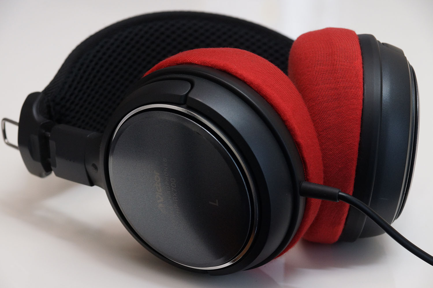JVC(Victor) HP-RX700のイヤーパッドの修理や装着感の改善にmimimamoを使用する場合(※写真はLサイズの装着例)