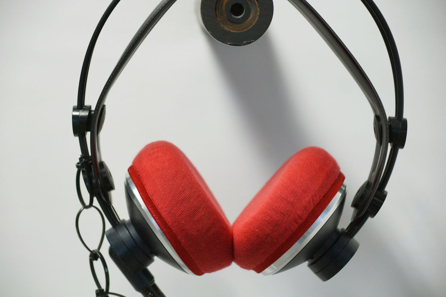 mimimamo를 부착했을 때의 착용감 AKG K171 MKII설치 예 등 (※ 사진은 M 사이즈 설치 예 ※ 촬영 협력: 이☆이어폰 아키하바라점)
