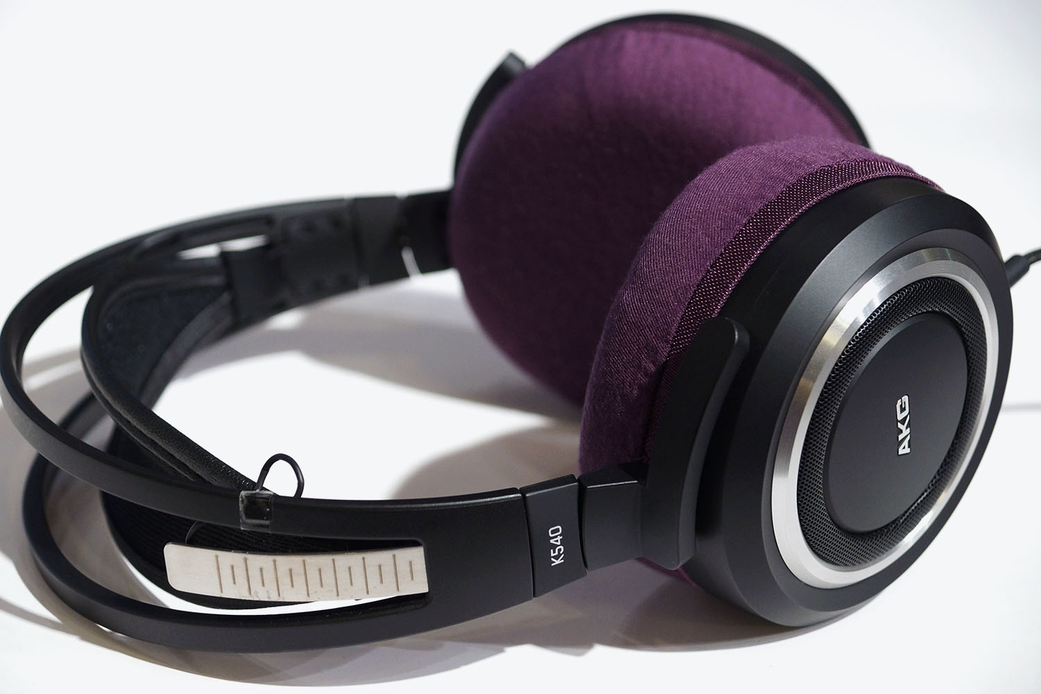 mimimamo를 부착했을 때의 착용감 AKG K540의 이어패드 수리 및 착용감 개선을 위해 mimimamo를 사용하는 경우 (※사진은 L 사이즈 착용 예시*촬영 협조:제21회 헤드폰 대응표 협력 캠페인 참가자 여러분)