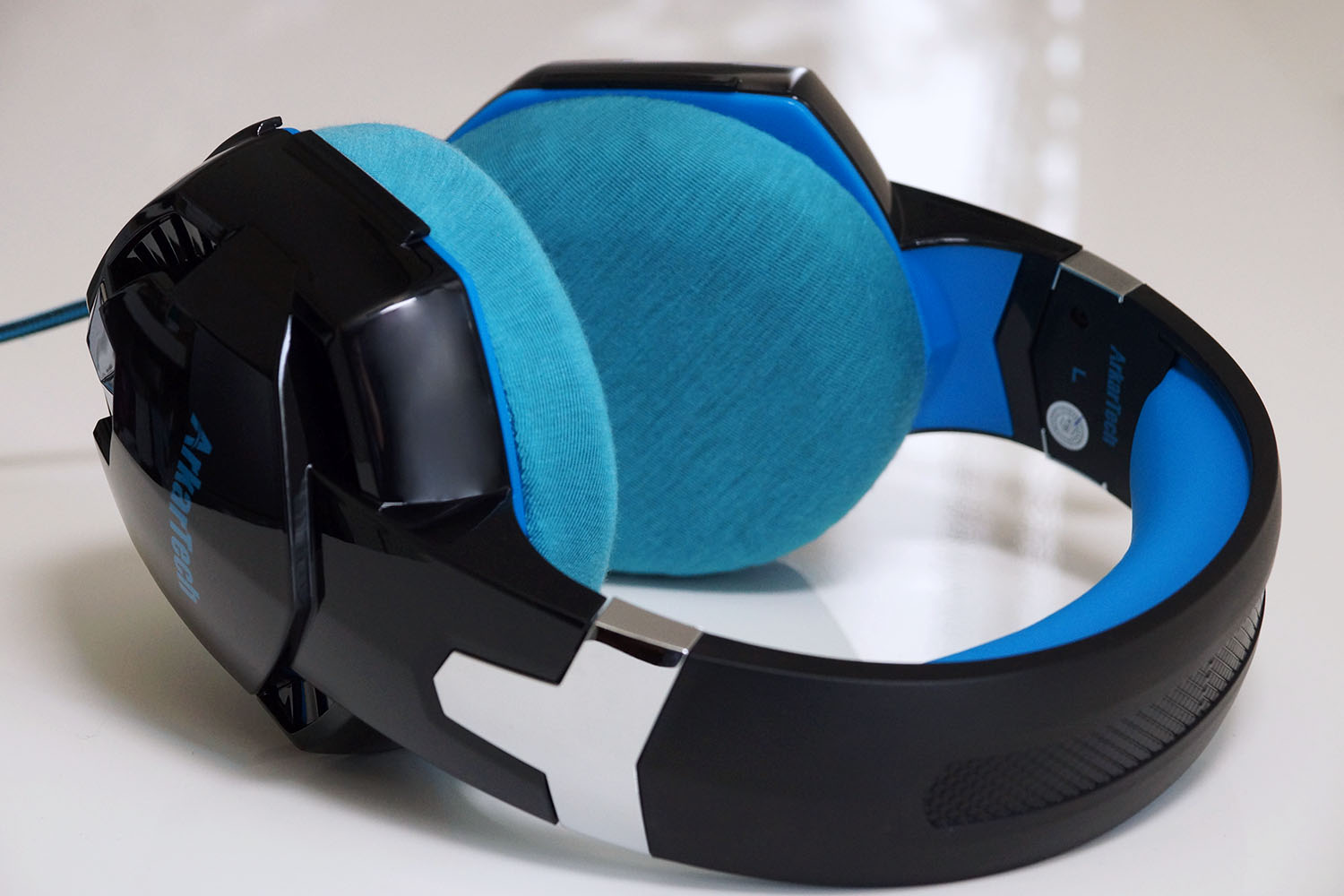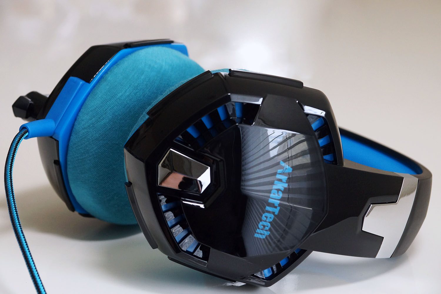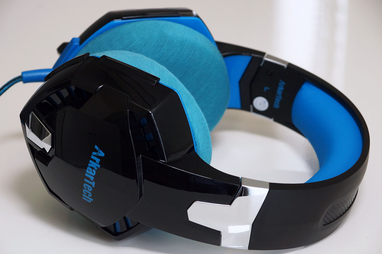 이 헤드셋은 "ArkarTech"라는 일상용품을 다양하게 제공하는 회사의 유선 게이밍 헤드셋입니다. 게이밍 헤드셋의 미래적인 디자인으로, 아날로그 오디오 모델에는 드물게 귀 컵에 불이 들어오는 기능이 있습니다(별도의 USB 연결 필요). 헤드밴드의 쿠션은 두껍고 부드러워, 금속 슬라이더와 섬유로 코팅된 오디오 케이블도 튼튼한 제작감을 느낄 수 있습니다. 50mm 드라이버에 의한 강력한 저음도 매력 중 하나입니다. 매우 비용 효율적인 훌륭한 제품이라고 할 수 있습니다.