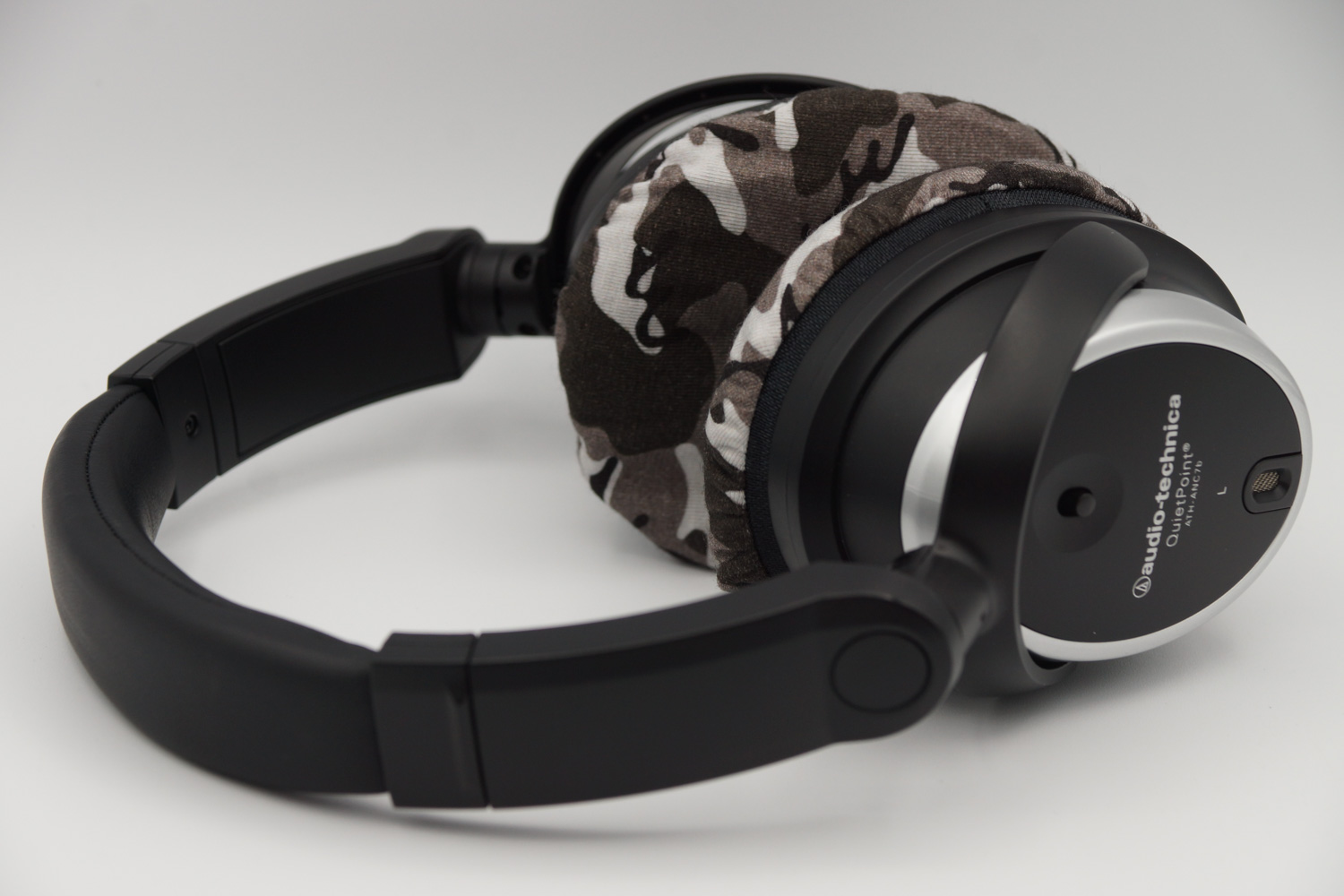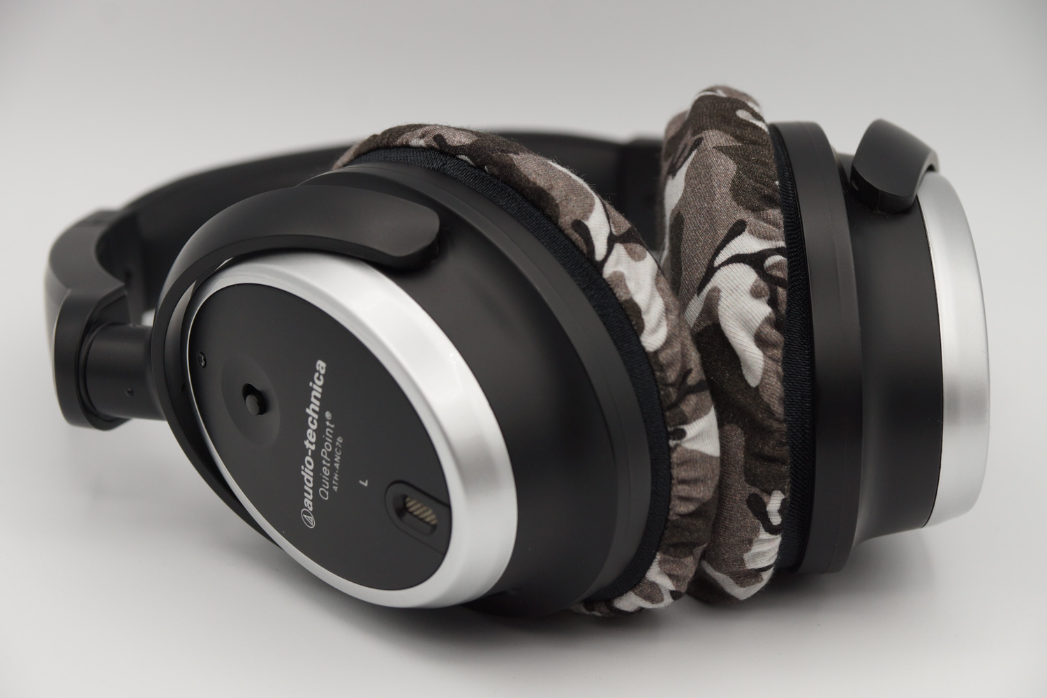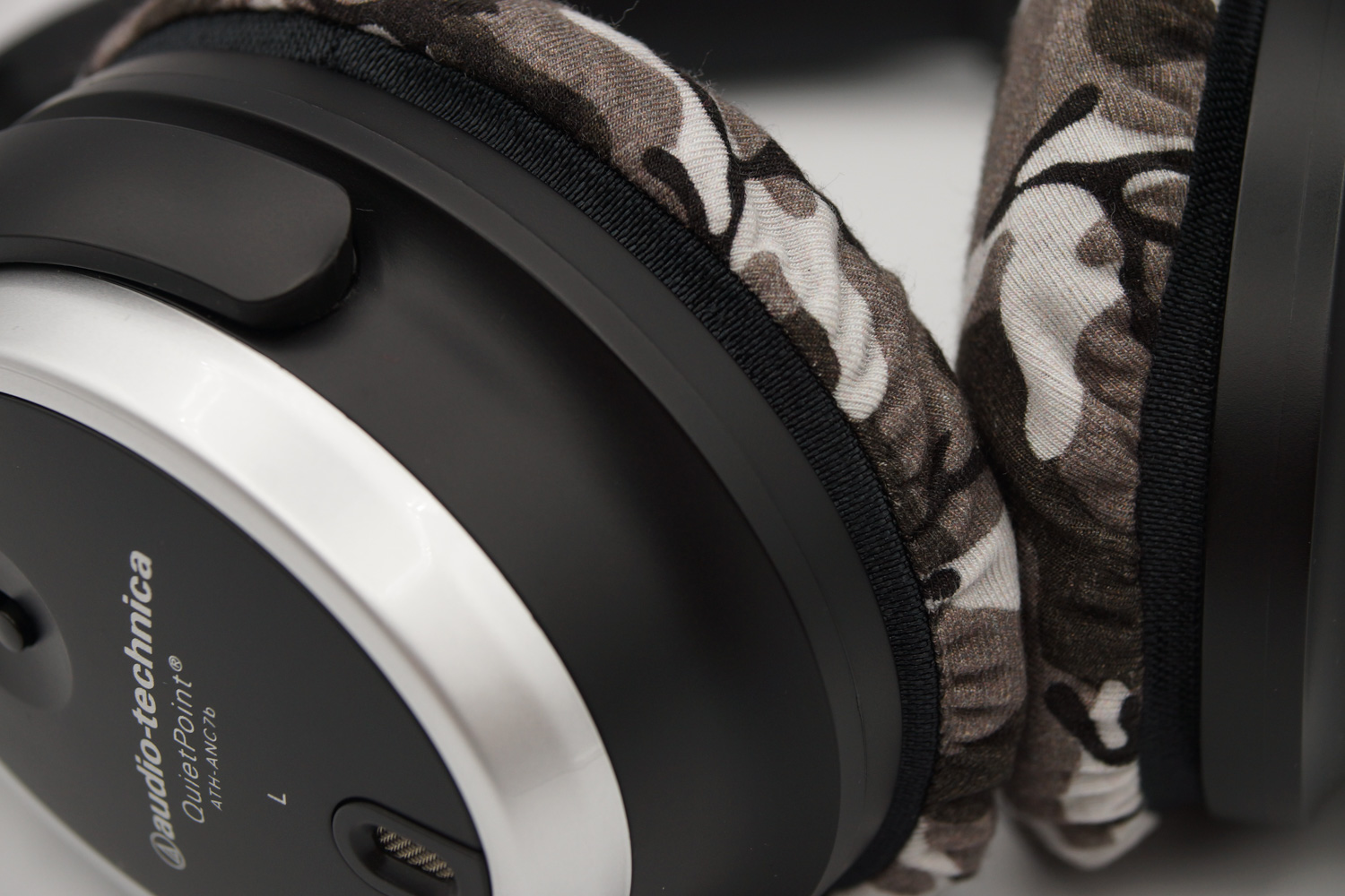 mimimamo를 부착했을 때의 착용감 audio-technica ATH-ANC7b의 이어패드 수리 및 착용감 개선을 위해 mimimamo를 사용하는 경우 (※사진은 L 사이즈 착용 예시)