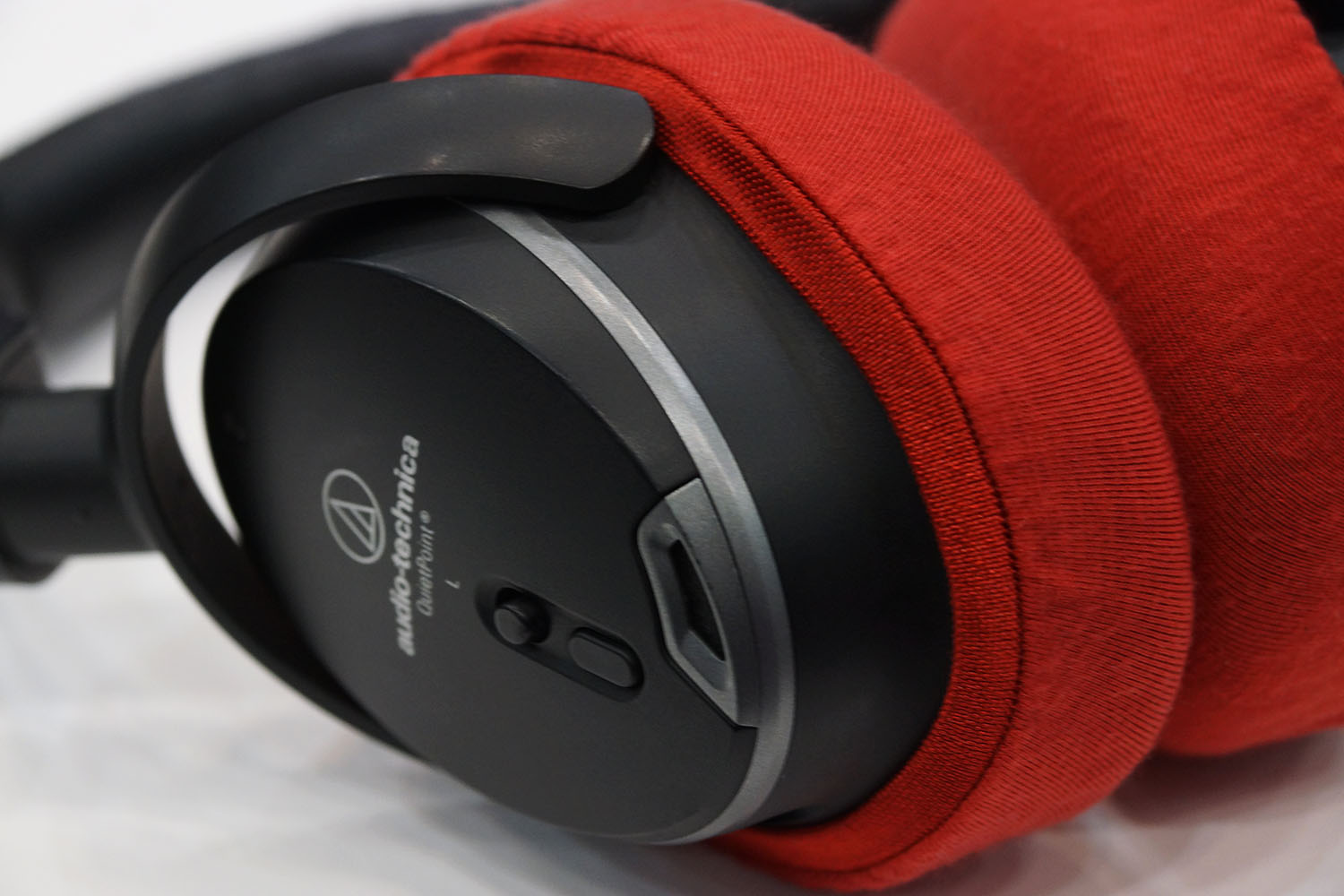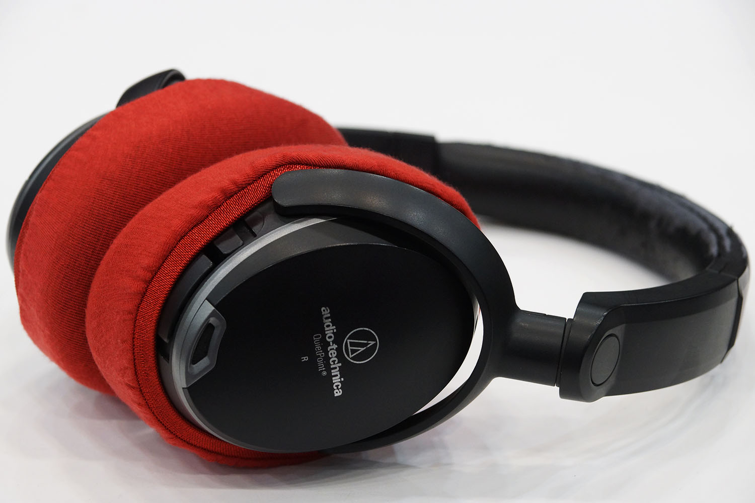 mimimamo를 부착했을 때의 착용감 audio-technica ATH-ANC9의 이어패드 수리 및 착용감 개선을 위해 mimimamo를 사용하는 경우 (※사진은 L 사이즈 착용 예시*촬영 협조:제22회 헤드폰 대응표 협력 캠페인 참가자 여러분)