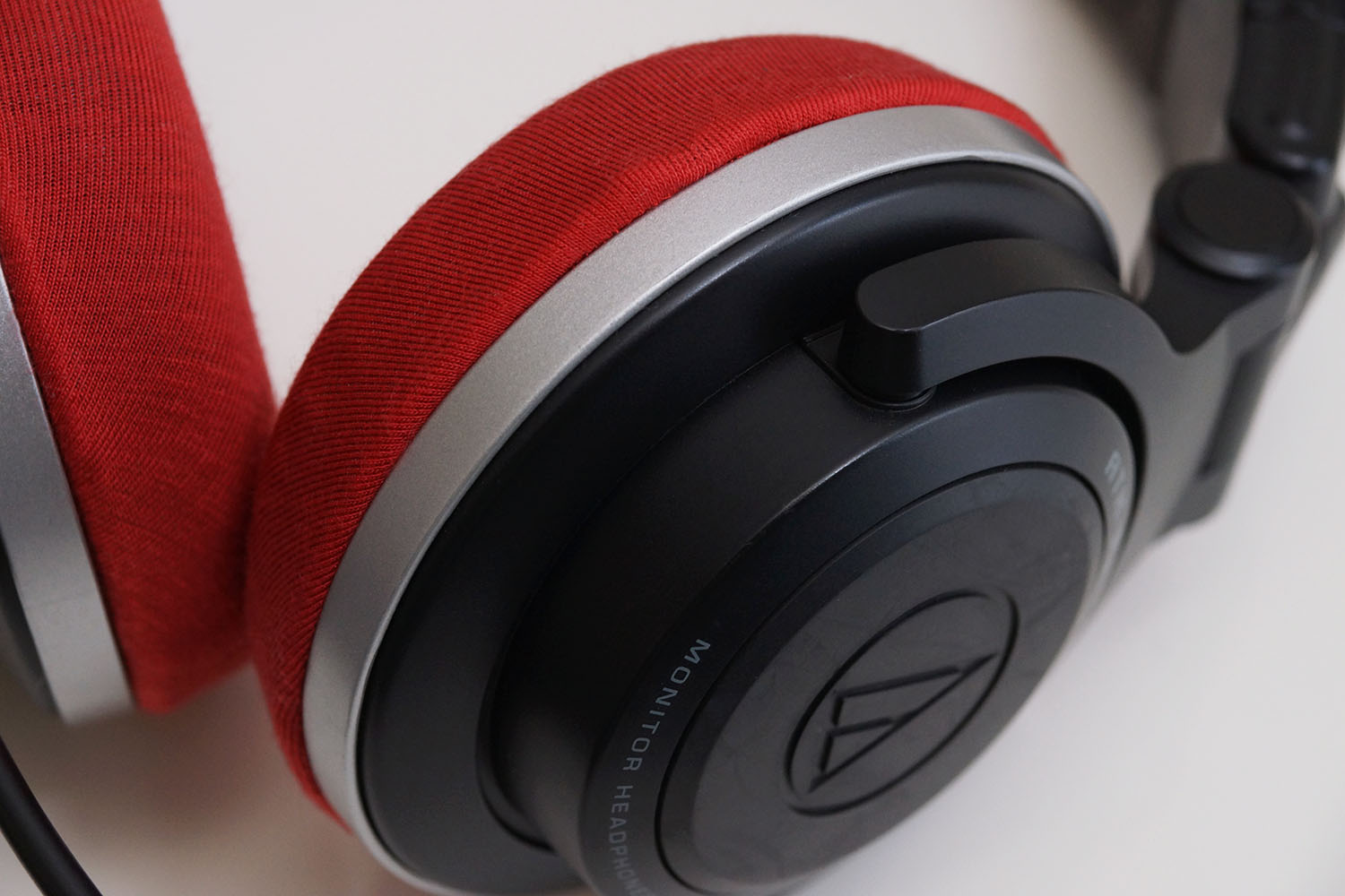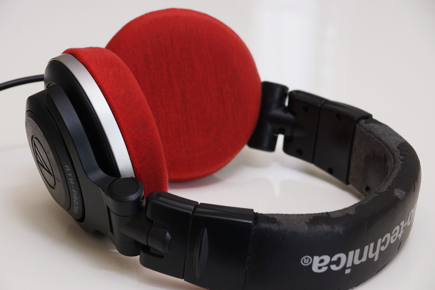 mimimamo를 부착했을 때의 착용감 audio-technica ATH-PRO700의 이어패드 수리 및 착용감 개선을 위해 mimimamo를 사용하는 경우 (※사진은 M 사이즈 착용 예시)