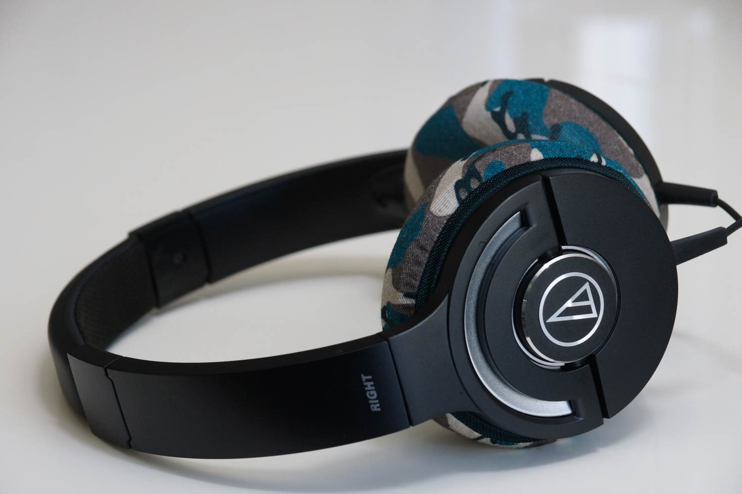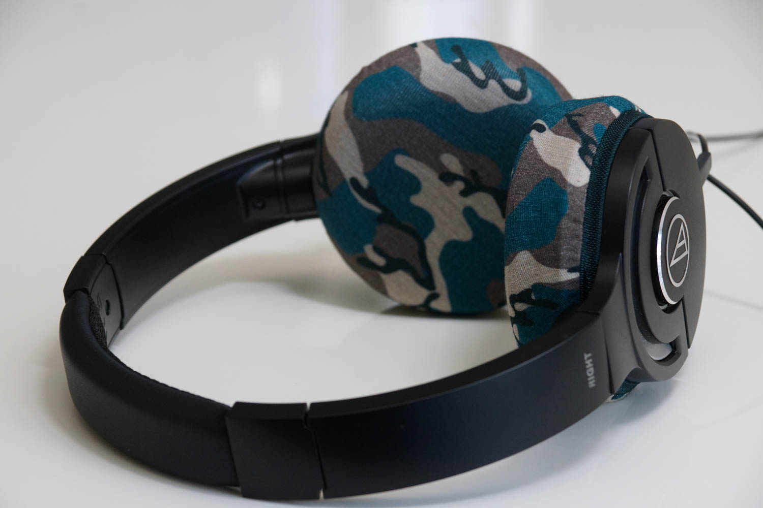 mimimamo를 부착했을 때의 착용감 audio-technica ATH-WS55X의 이어패드 수리 및 착용감 개선을 위해 mimimamo를 사용하는 경우 (※사진은 M 사이즈 착용 예시)