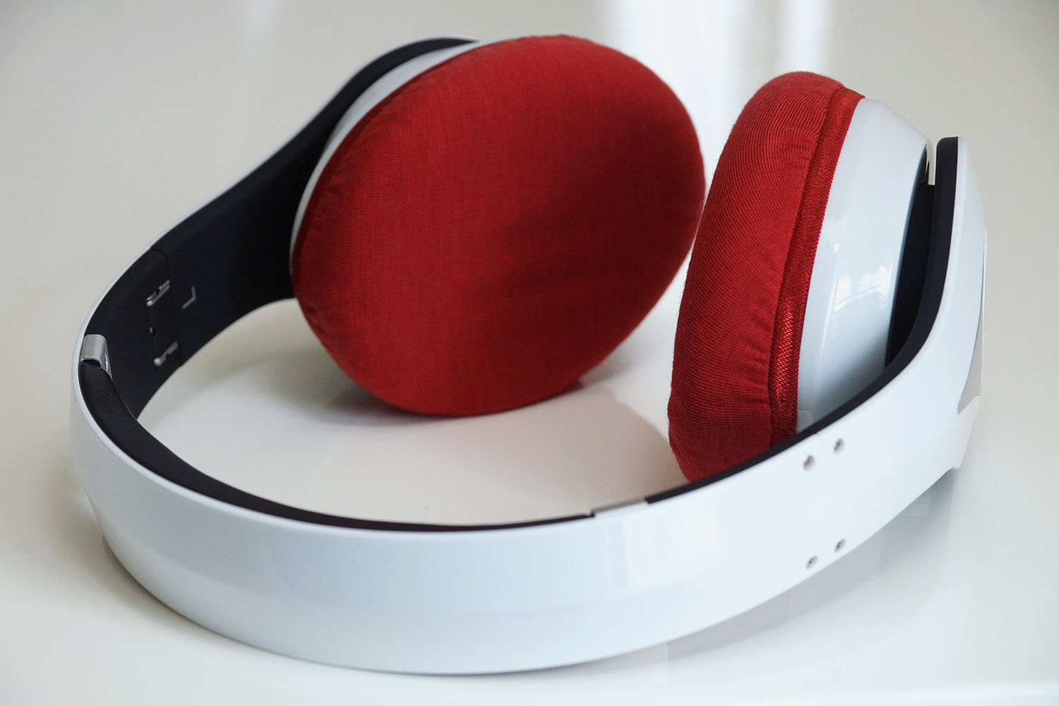 mimimamo를 부착했을 때의 착용감 August EP640의 이어패드 수리 및 착용감 개선을 위해 mimimamo를 사용하는 경우 (※사진은 L 사이즈 착용 예시)