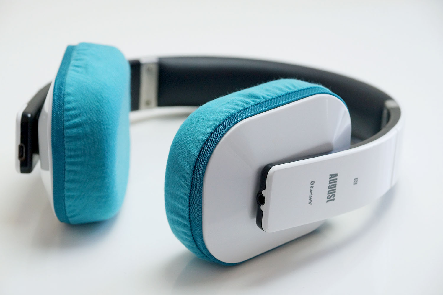 mimimamo를 부착했을 때의 착용감 August EP650의 이어패드 수리 및 착용감 개선을 위해 mimimamo를 사용하는 경우 (※사진은 L 사이즈 착용 예시)