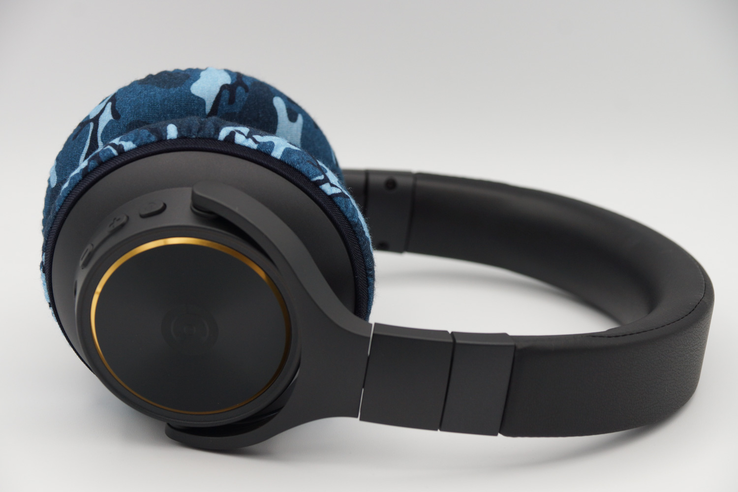 mimimamo를 부착했을 때의 착용감 Cystereo LAVA의 이어패드 수리 및 착용감 개선을 위해 mimimamo를 사용하는 경우 (※사진은 L 사이즈 착용 예시)