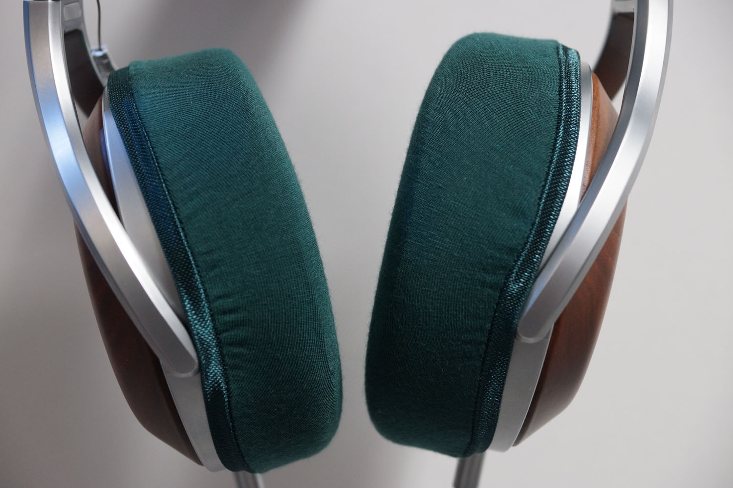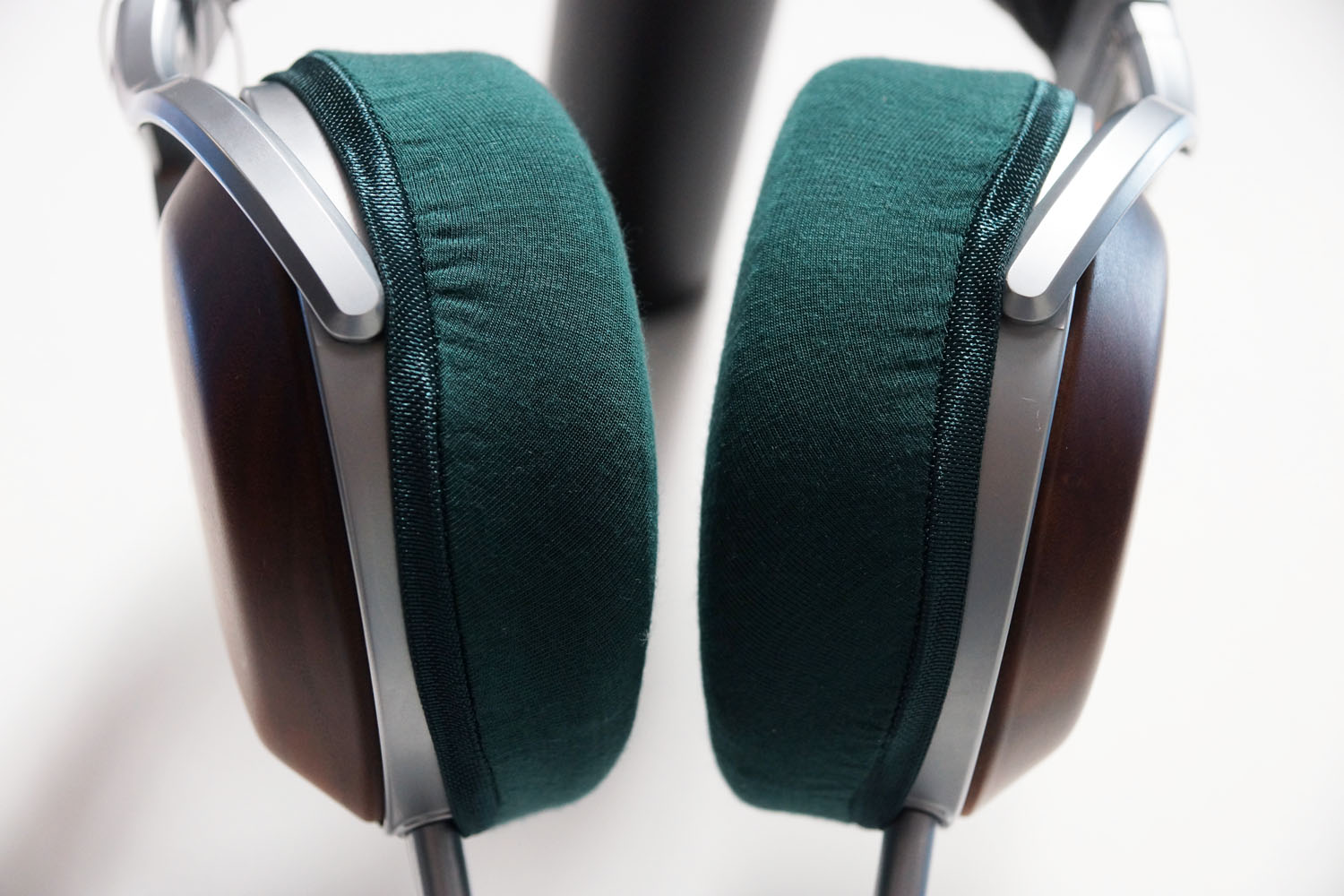 mimimamo를 부착했을 때의 착용감 DENON AH-D7200의 이어패드 수리 및 착용감 개선을 위해 mimimamo를 사용하는 경우 (※사진은 L 사이즈 착용 예시*촬영 협조:e-earphone 아키하바라점포)