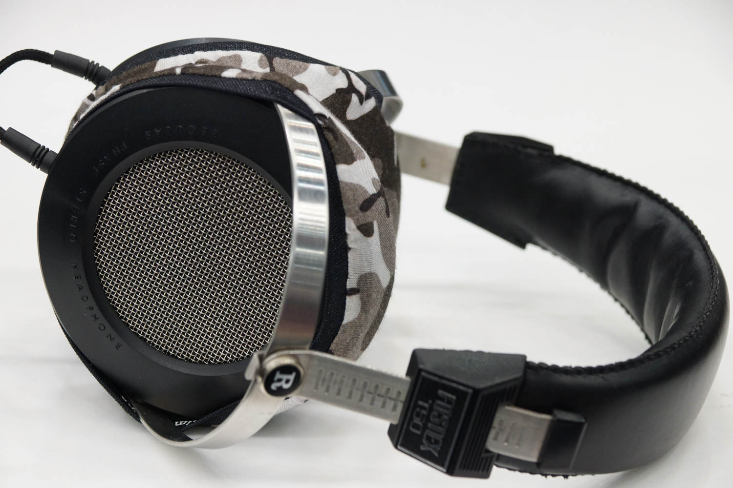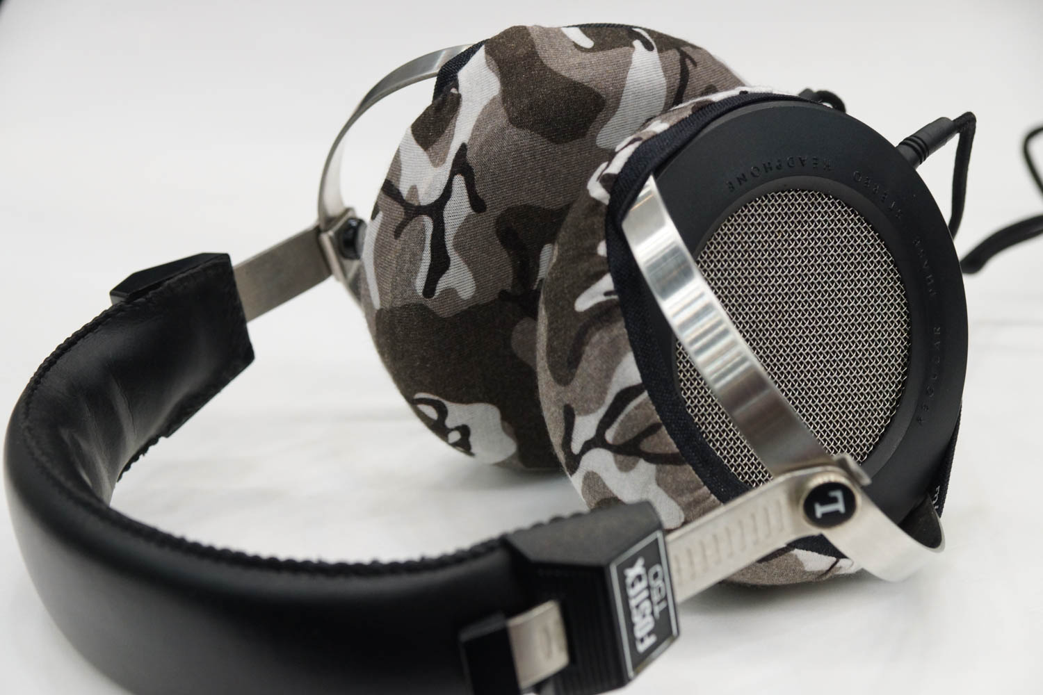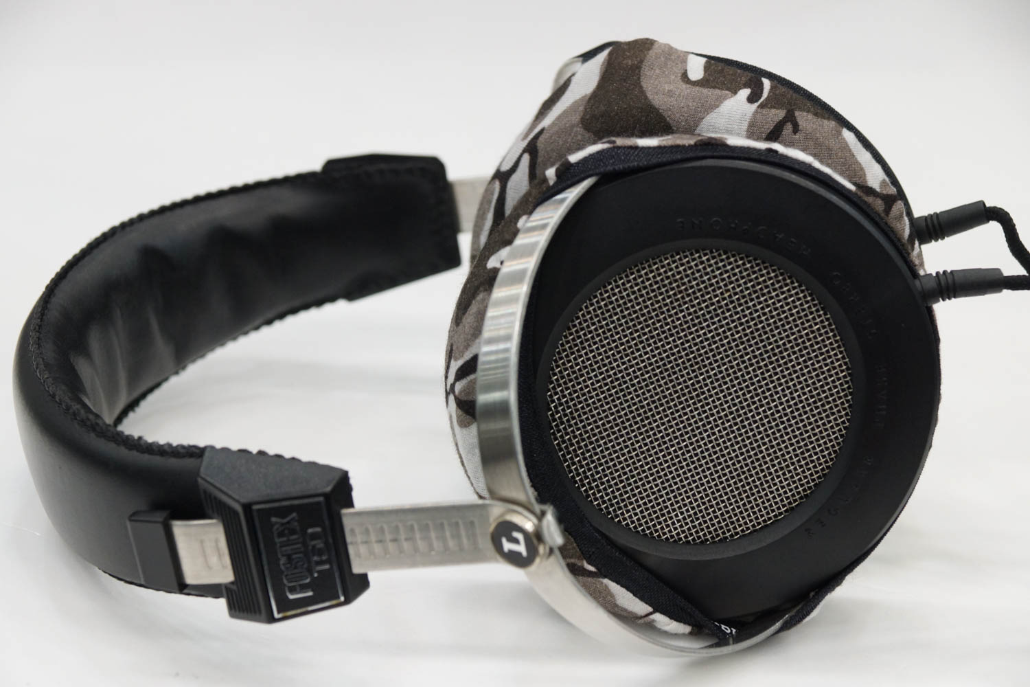 mimimamo를 부착했을 때의 착용감 Fostex T50의 이어패드 수리 및 착용감 개선을 위해 mimimamo를 사용하는 경우 (※사진은 L 사이즈 착용 예시)