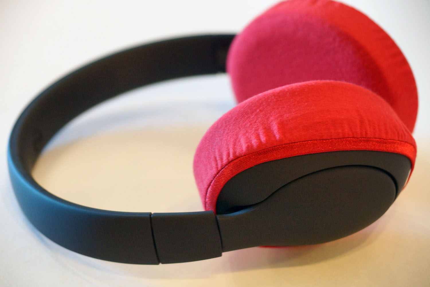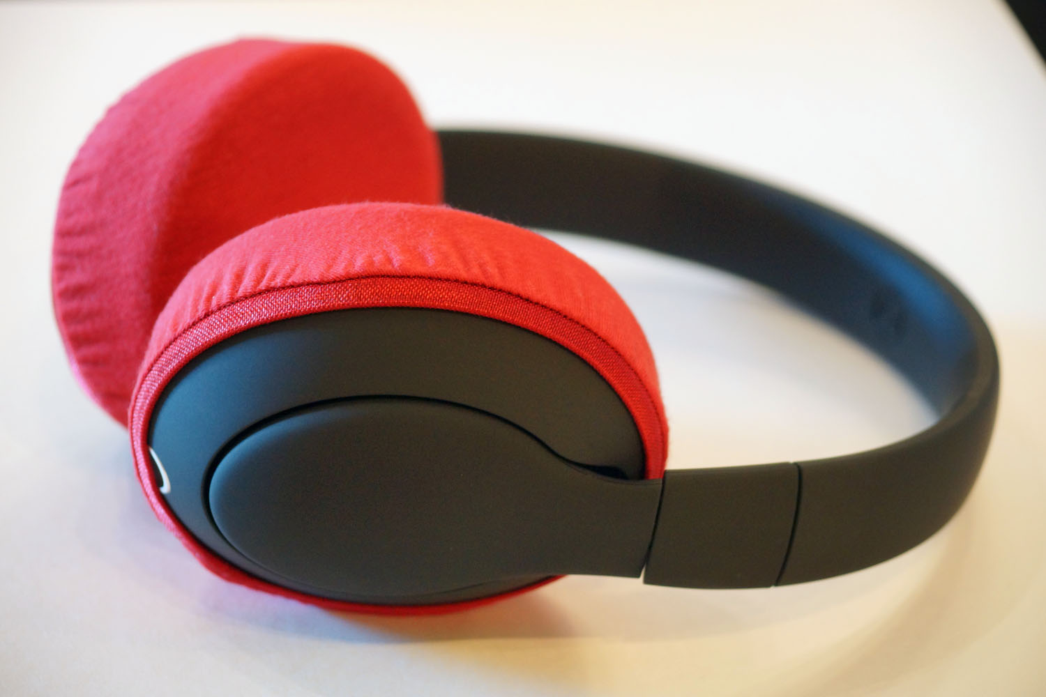 mimimamo를 부착했을 때의 착용감 GOOD SMILE COMPANY Double Zero 001의 이어패드 수리 및 착용감 개선을 위해 mimimamo를 사용하는 경우 (※사진은 L 사이즈 착용 예시*촬영 협조:제10회 헤드폰 대응표 협력 캠페인 참가자 여러분)