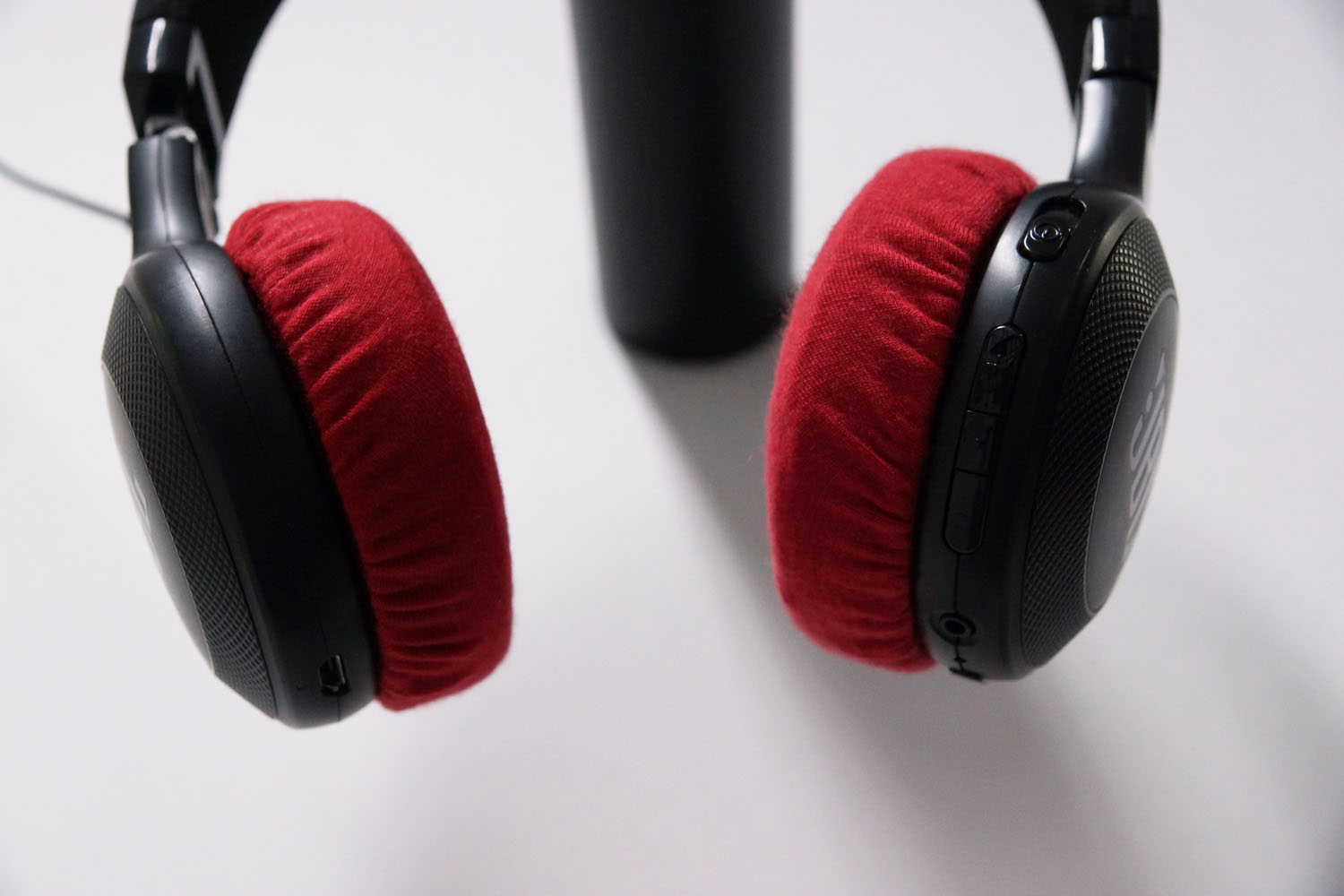 mimimamo를 부착했을 때의 착용감 JBL E45BT설치 예 등 (※ 사진은 M 사이즈 설치 예 ※ 촬영 협력: 이☆이어폰 아키하바라점)