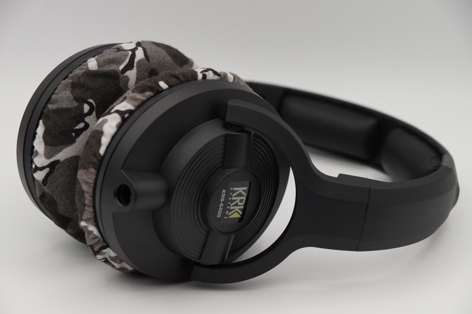 mimimamo를 부착했을 때의 착용감 KRK SYSTEMS KNS-6400의 이어패드 수리 및 착용감 개선을 위해 mimimamo를 사용하는 경우 (※사진은 L 사이즈 착용 예시)