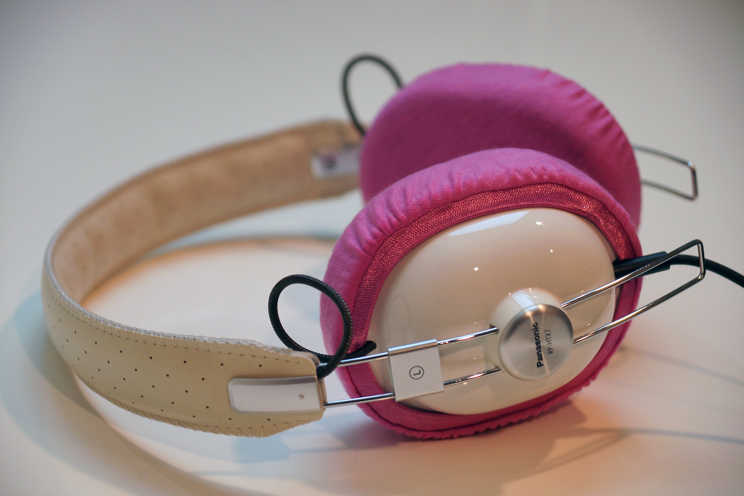 mimimamo를 부착했을 때의 착용감 Panasonic RP-HTX7의 이어패드 수리 및 착용감 개선을 위해 mimimamo를 사용하는 경우 (※사진은 L 사이즈 착용 예시)
