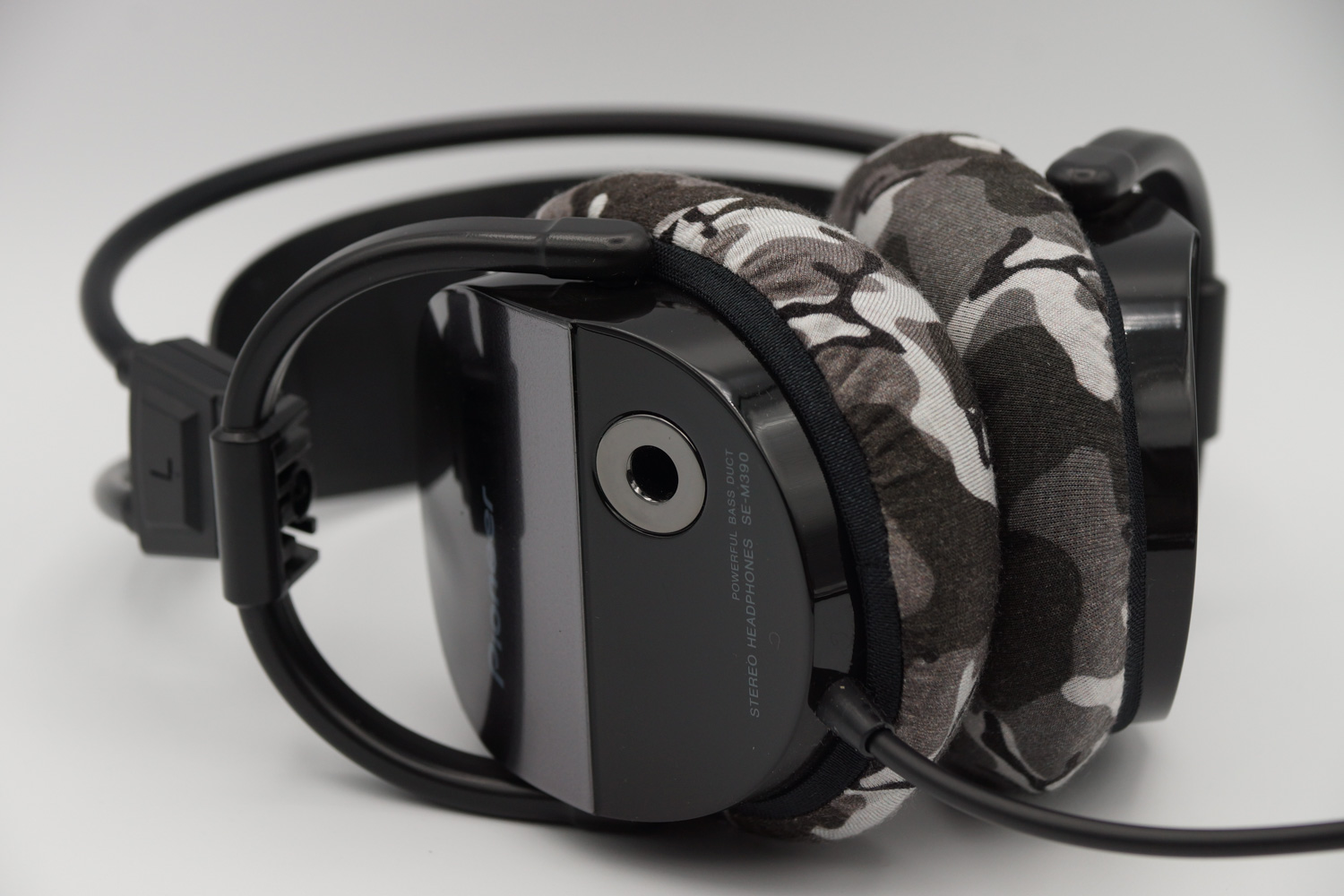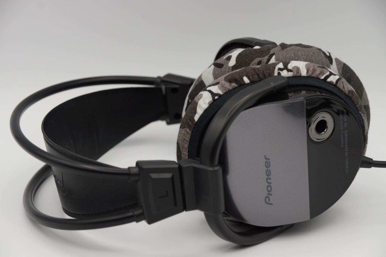 mimimamo를 부착했을 때의 착용감 Pioneer SE-M390의 이어패드 수리 및 착용감 개선을 위해 mimimamo를 사용하는 경우 (※사진은 L 사이즈 착용 예시)