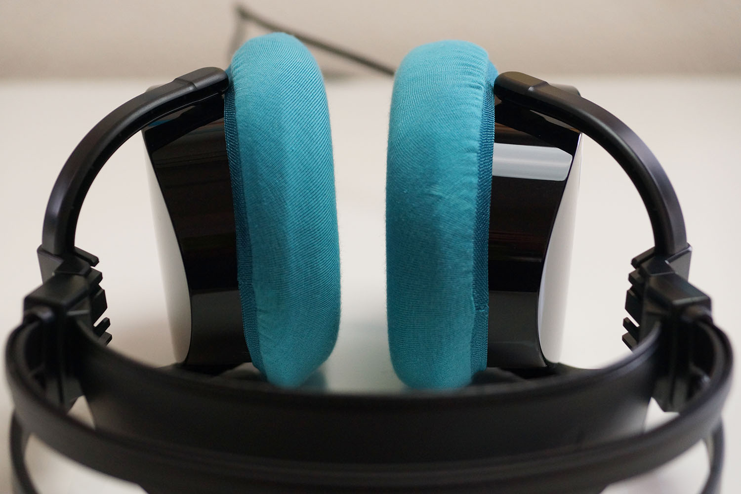 이 커버는 세로와 가로로의 신축성에 차이가 있으며, 세로 방향이 더 잘 늘어나는 특성이 있습니다. 이 헤드폰은 세로 길이의 이어패드이므로, 커버도 세로 방향(잘 늘어나는 방향)으로 맞추어 장착하면 착용감이 좋아집니다.