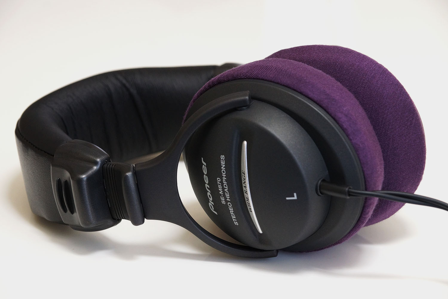 mimimamo를 부착했을 때의 착용감 Pioneer SE-M870의 이어패드 수리 및 착용감 개선을 위해 mimimamo를 사용하는 경우 (※사진은 L 사이즈 착용 예시)