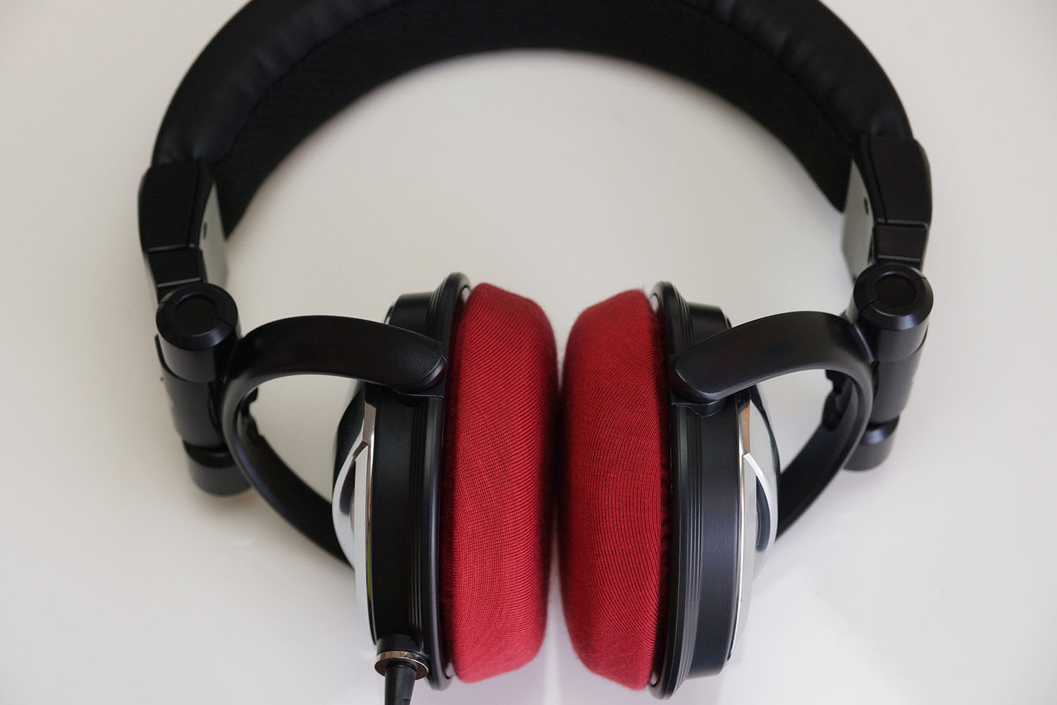 mimimamo를 부착했을 때의 착용감 Pioneer SE-MJ5의 이어패드 수리 및 착용감 개선을 위해 mimimamo를 사용하는 경우 (※사진은 M 사이즈 착용 예시)