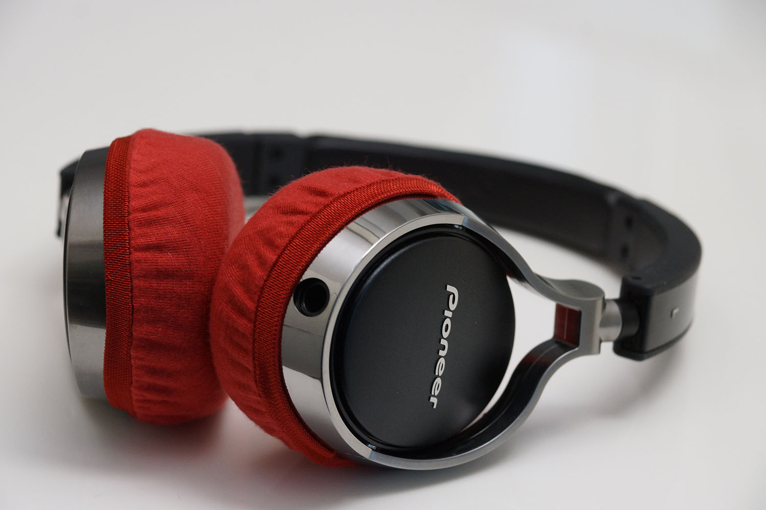 mimimamo를 부착했을 때의 착용감 Pioneer SE-MJ591의 이어패드 수리 및 착용감 개선을 위해 mimimamo를 사용하는 경우 (※사진은 M 사이즈 착용 예시)