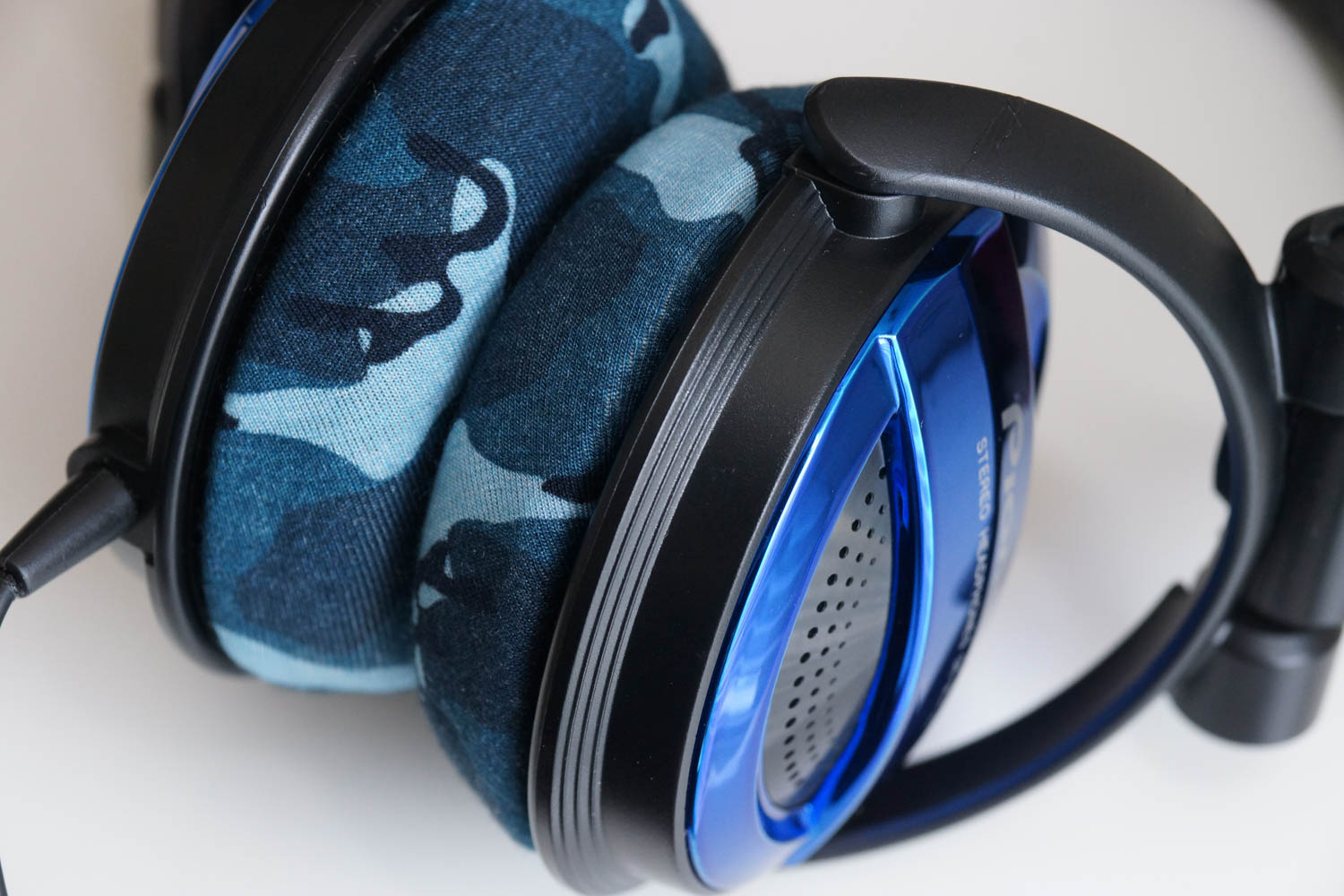mimimamo를 부착했을 때의 착용감 Pioneer SE-MJ732의 이어패드 수리 및 착용감 개선을 위해 mimimamo를 사용하는 경우 (※사진은 M 사이즈 착용 예시)