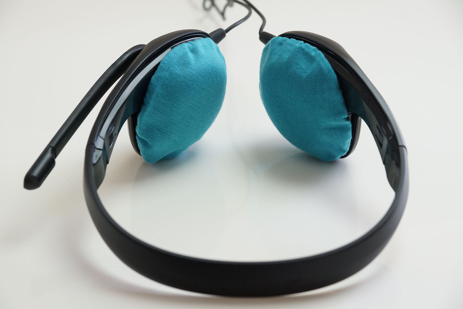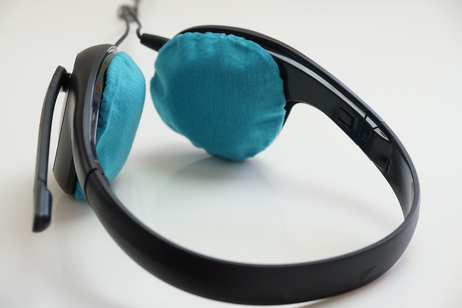 mimimamo를 부착했을 때의 착용감 plantronics AUDIO628의 이어패드 수리 및 착용감 개선을 위해 mimimamo를 사용하는 경우 (※사진은 M 사이즈 착용 예시)