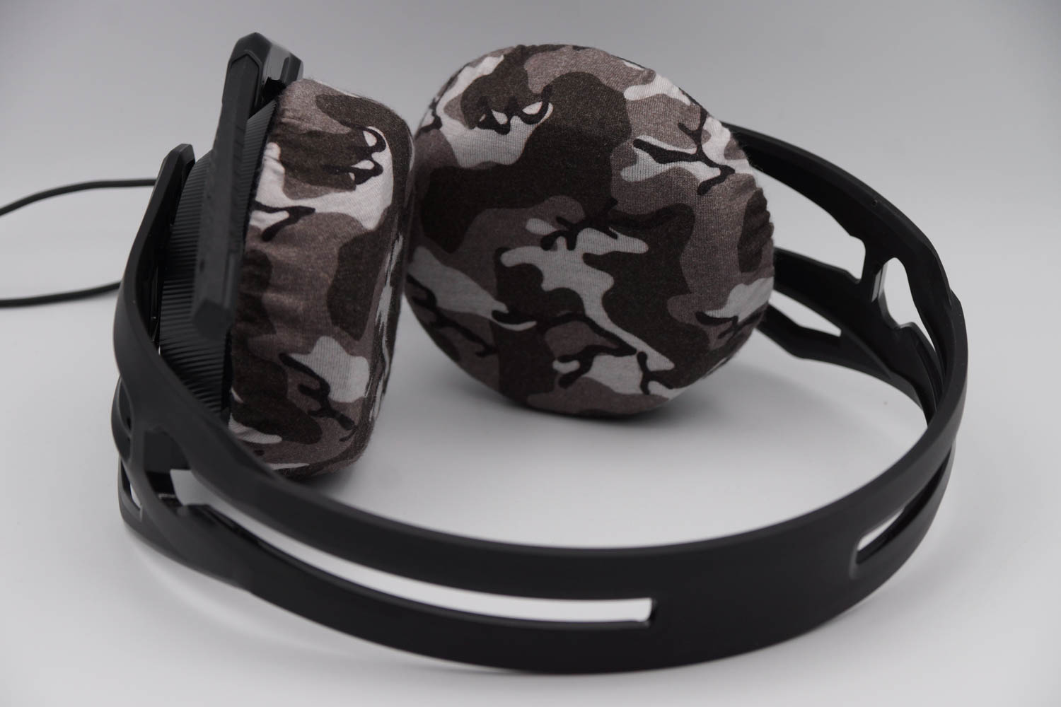 mimimamo를 부착했을 때의 착용감 plantronics RIG 500의 이어패드 수리 및 착용감 개선을 위해 mimimamo를 사용하는 경우 (※사진은 L 사이즈 착용 예시)