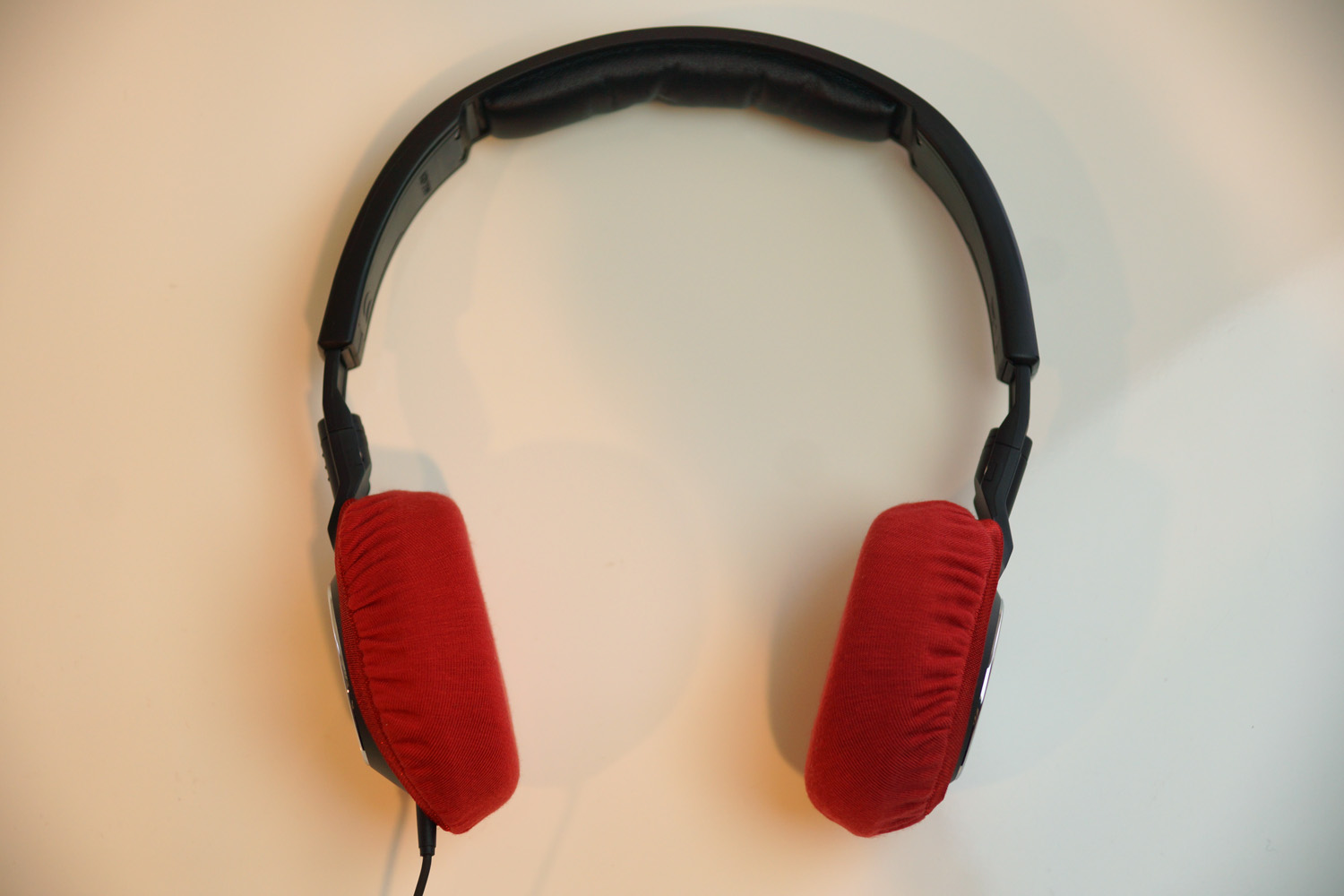 mimimamo를 부착했을 때의 착용감 SENNHEISER HD219의 이어패드 수리 및 착용감 개선을 위해 mimimamo를 사용하는 경우 (※사진은 M 사이즈 착용 예시)
