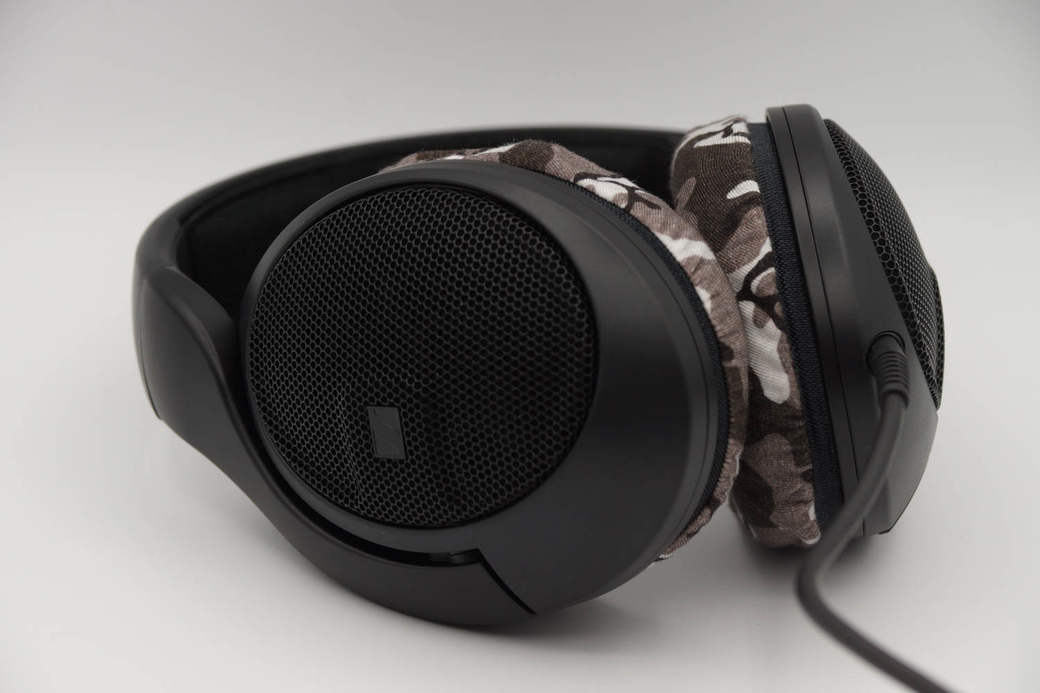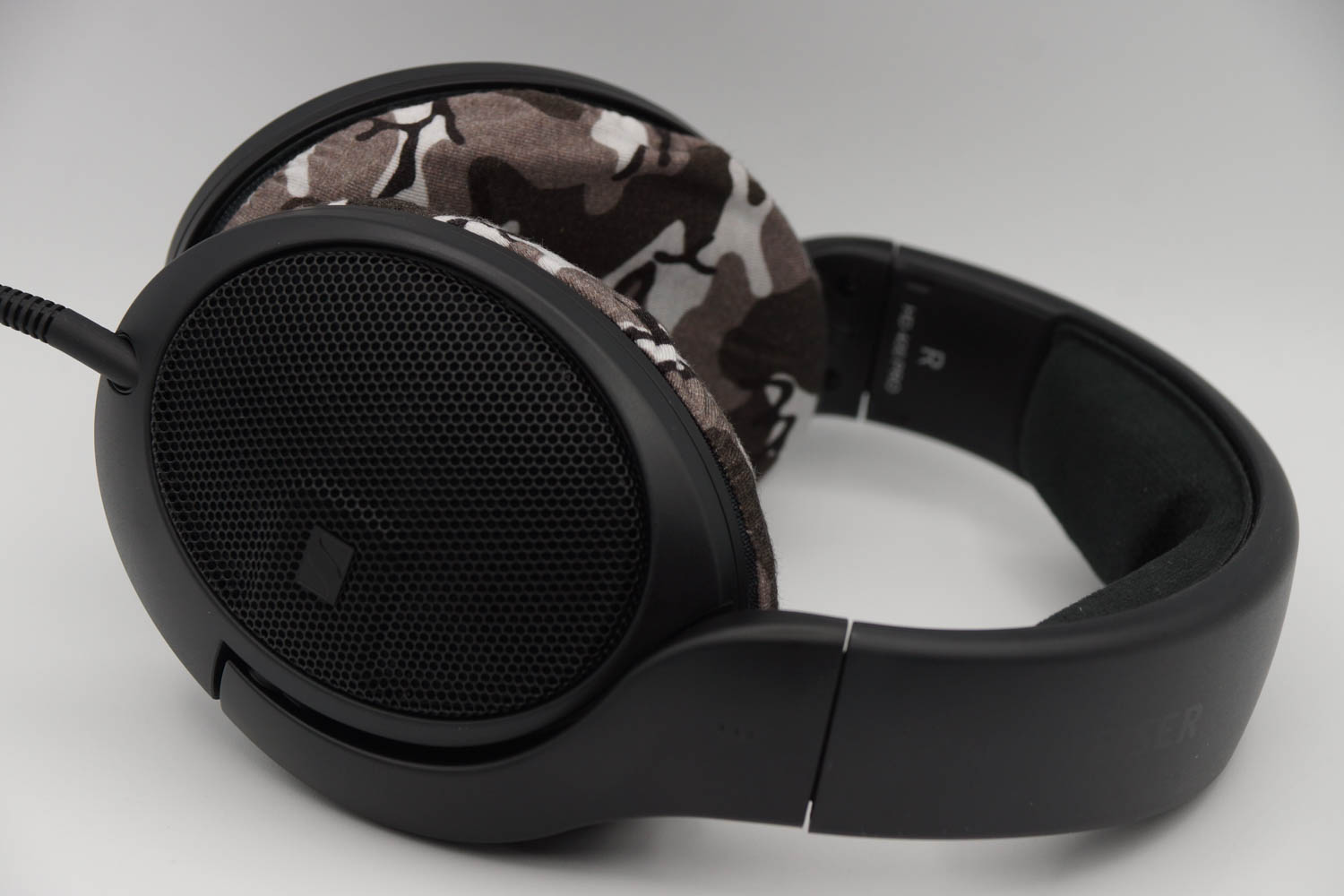 mimimamo를 부착했을 때의 착용감 SENNHEISER HD400PRO의 이어패드 수리 및 착용감 개선을 위해 mimimamo를 사용하는 경우 (※사진은 L 사이즈 착용 예시)