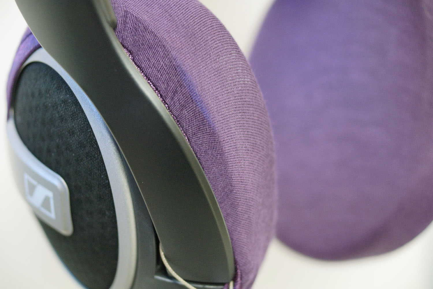 mimimamo를 부착했을 때의 착용감 SENNHEISER HD559의 이어패드 수리 및 착용감 개선을 위해 mimimamo를 사용하는 경우 (※사진은 L 사이즈 착용 예시*촬영 협조:e-earphone 아키하바라점포)