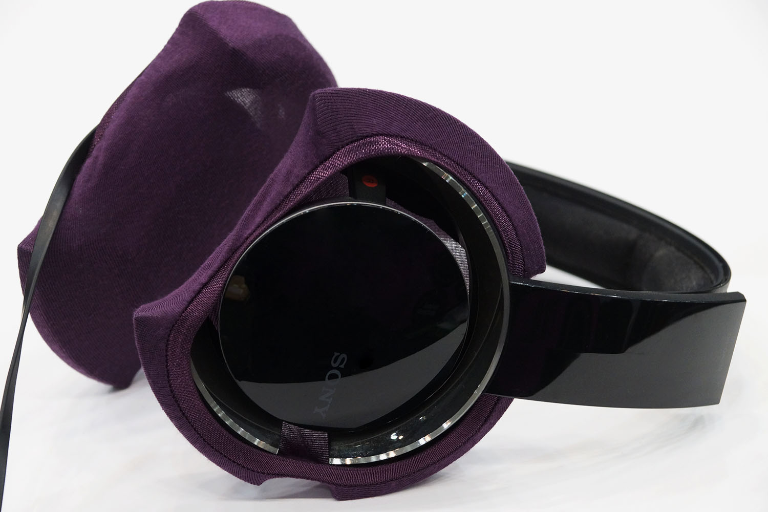 mimimamo를 부착했을 때의 착용감 SONY DR-GA210의 이어패드 수리 및 착용감 개선을 위해 mimimamo를 사용하는 경우 (※사진은 L 사이즈 착용 예시*촬영 협조:제22회 헤드폰 대응표 협력 캠페인 참가자 여러분)