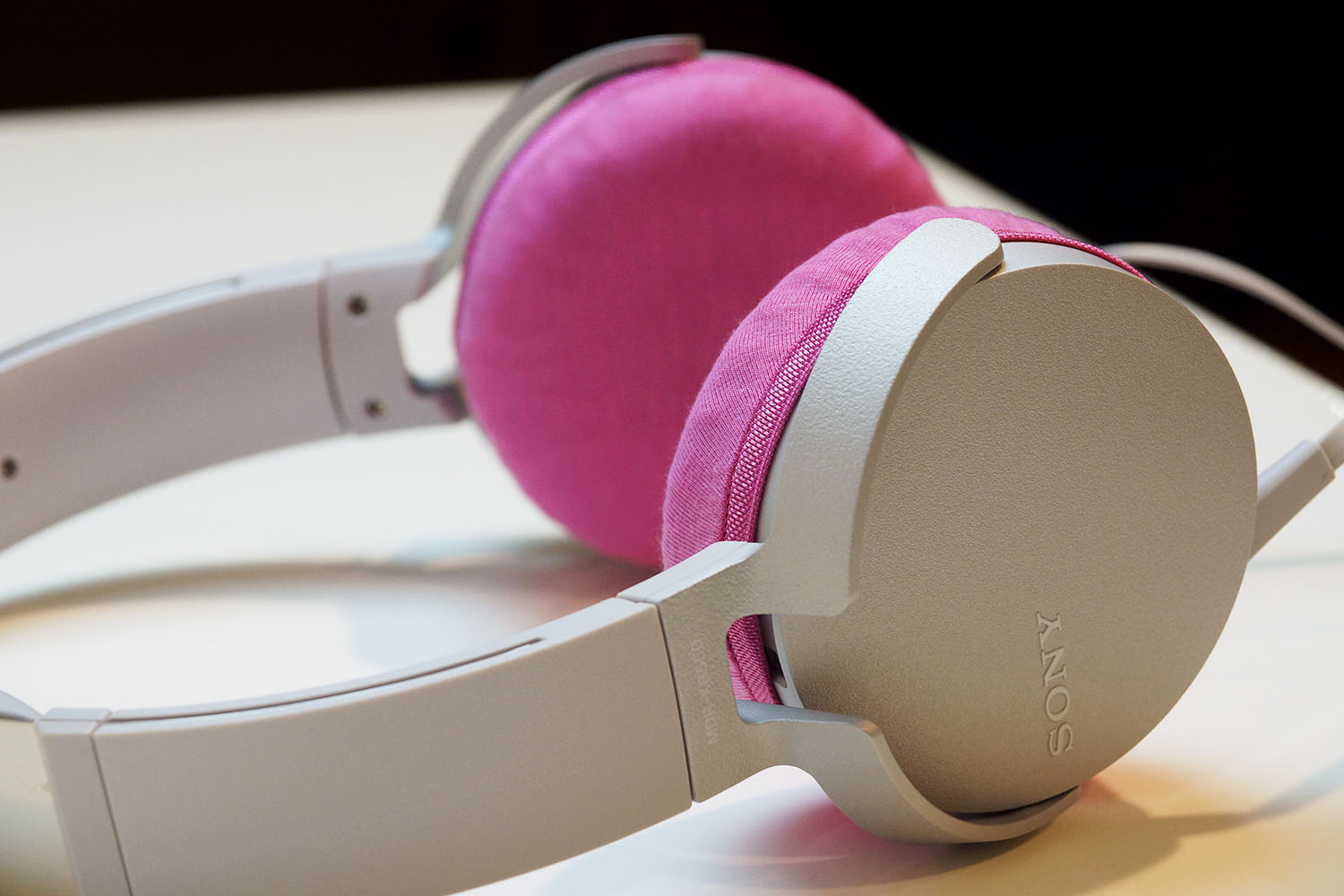 mimimamo를 부착했을 때의 착용감 SONY MDR-XB550AP의 이어패드 수리 및 착용감 개선을 위해 mimimamo를 사용하는 경우 (※사진은 M 사이즈 착용 예시)