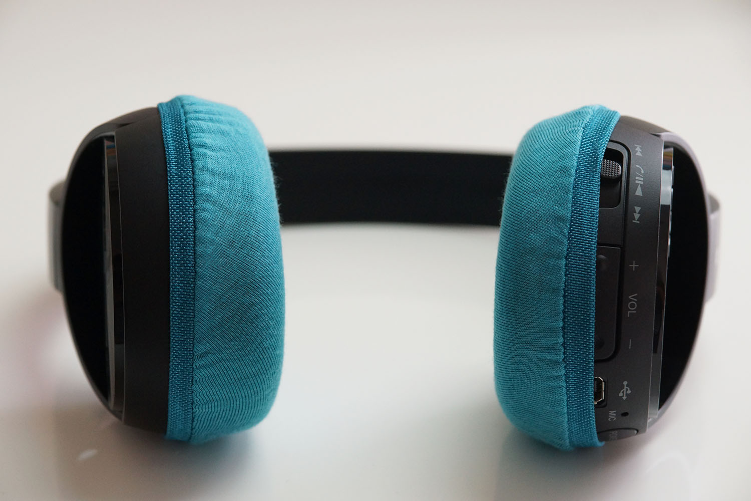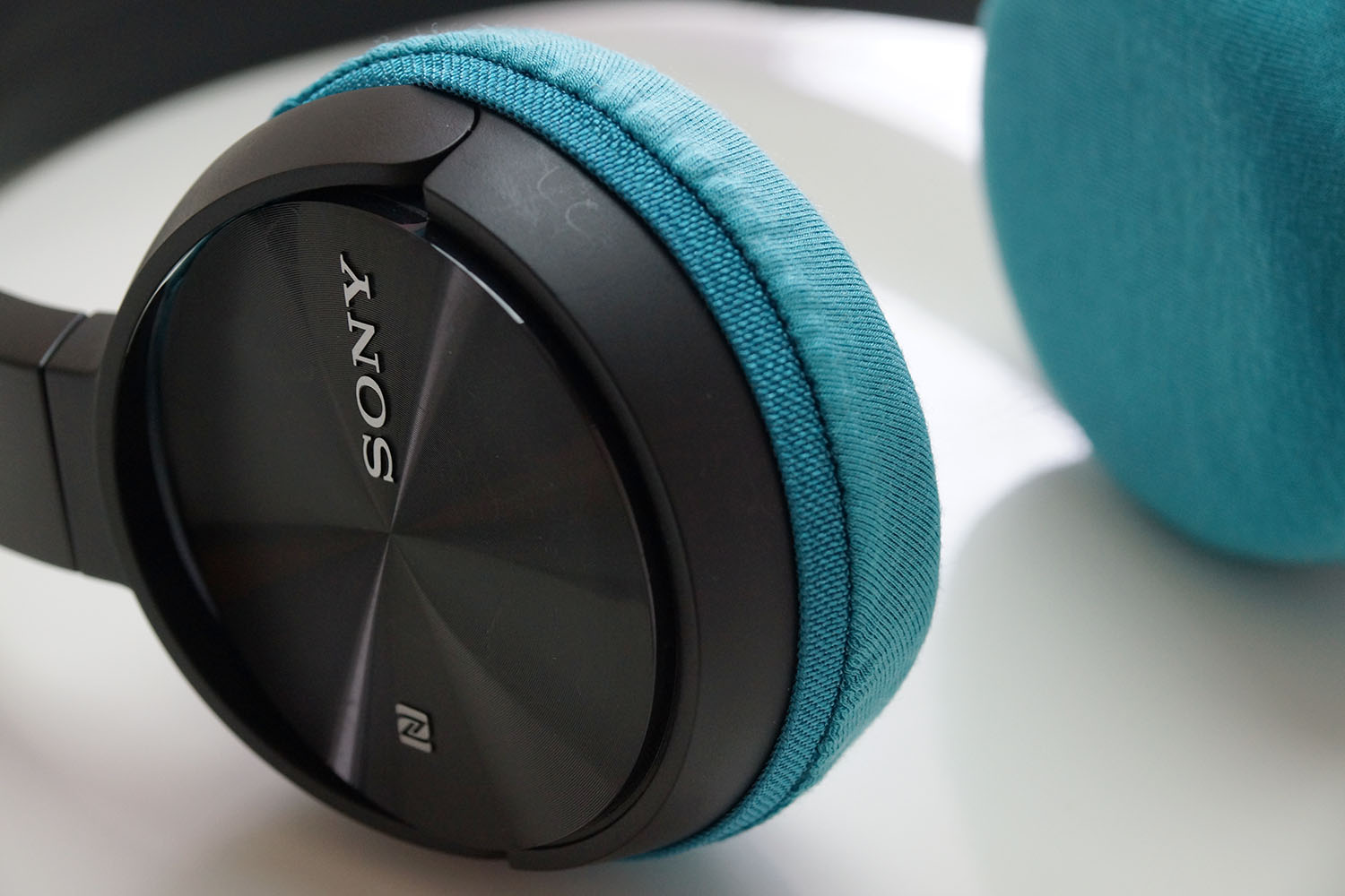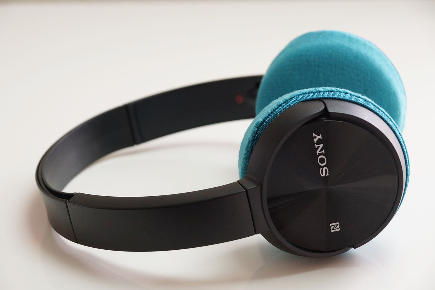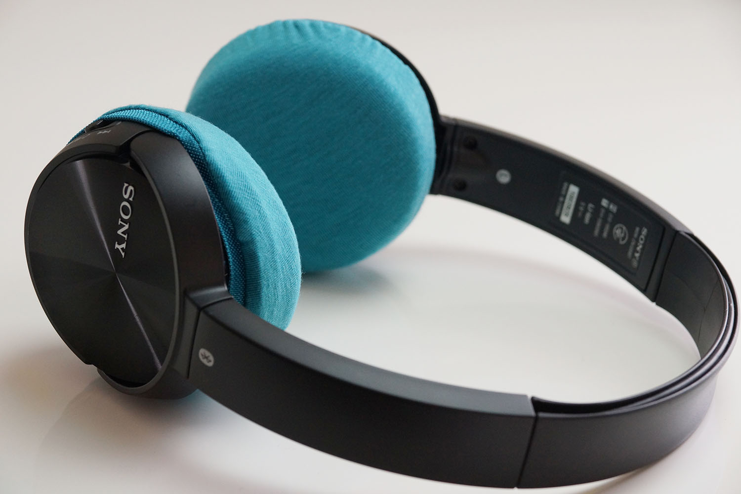 mimimamo를 부착했을 때의 착용감 SONY MDR-ZX330BT의 이어패드 수리 및 착용감 개선을 위해 mimimamo를 사용하는 경우 (※사진은 M 사이즈 착용 예시)