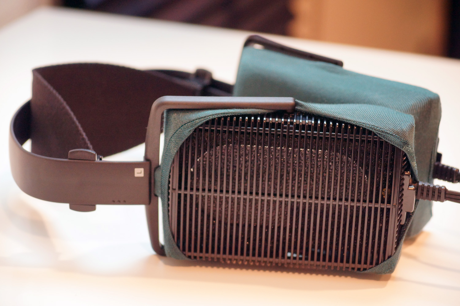 mimimamo를 부착했을 때의 착용감 STAX SR-207의 이어패드 수리 및 착용감 개선을 위해 mimimamo를 사용하는 경우 (※사진은 L 사이즈 착용 예시)