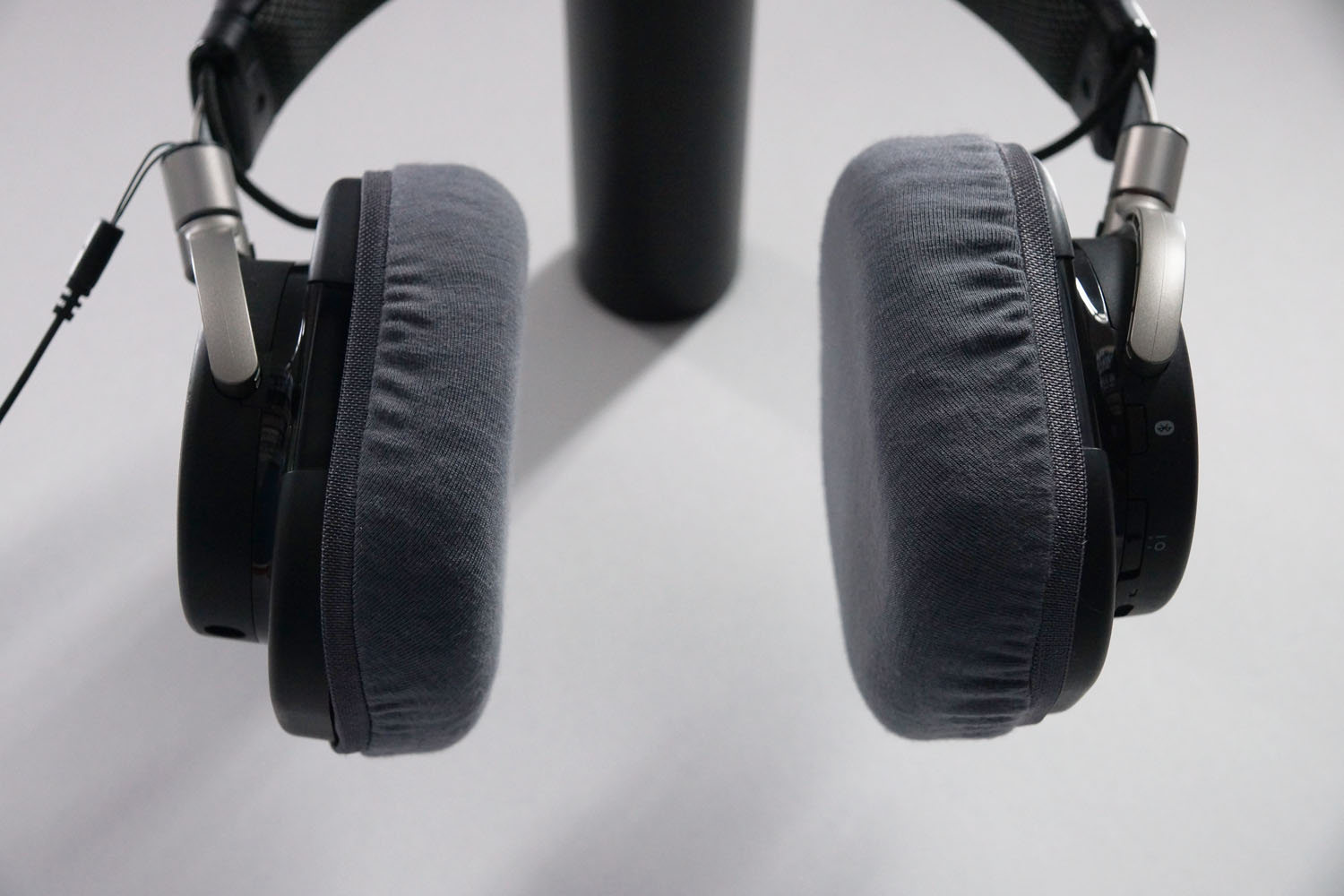 mimimamo를 부착했을 때의 착용감 YAMAHA HPH-W300의 이어패드 수리 및 착용감 개선을 위해 mimimamo를 사용하는 경우 (※사진은 L 사이즈 착용 예시*촬영 협조:e-earphone 아키하바라점포)