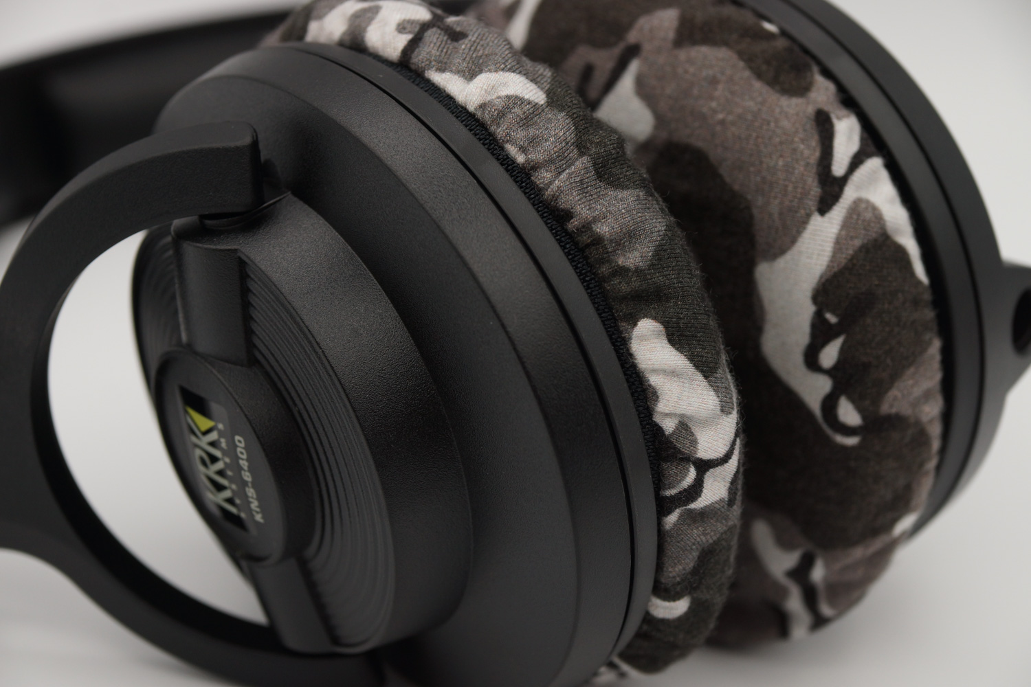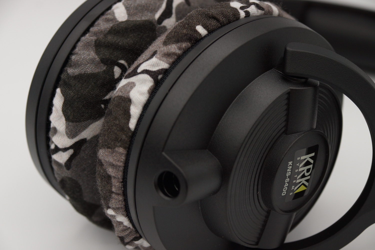 KRK SYSTEMS KNS-6400のイヤーパッドの修理や装着感の改善にmimimamoを使用する場合(※写真はLサイズの装着例)