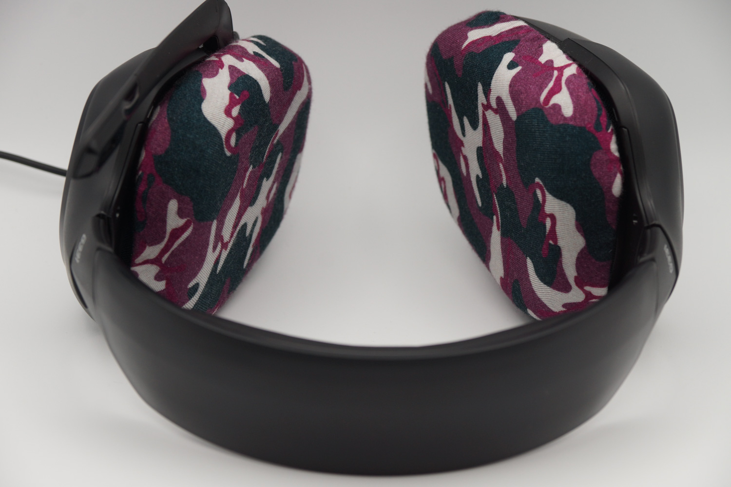 本カバーは縦と横で伸縮率に違いがあり、縦の方が伸びが良いという特性があります。本ヘッドセットは縦長のイヤーパッドなので、カバーも縦方向(よく伸びる方向)になるように、向きを揃えて装着する方が、装着感が良くなります。