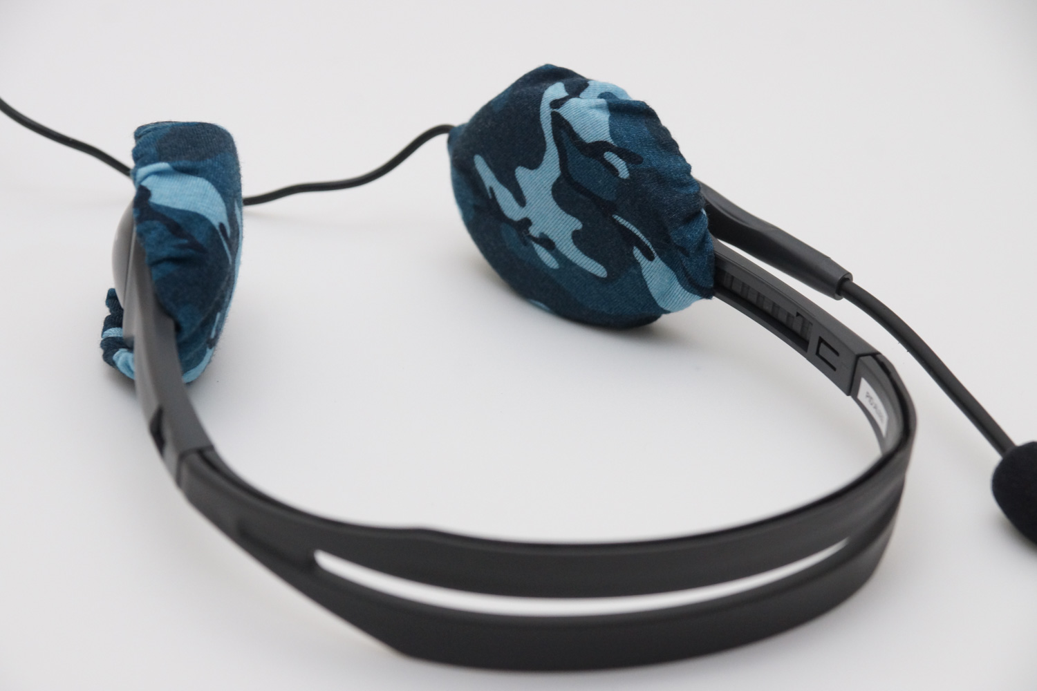 カバーを装着するときは、カバーのゴムバンドの部分を内側に巻き込むように装着するのがお勧めです。イヤーパッドが非常に小さいため、カバーに余りが生じますので、手でカバーの余った部分を少しなじませてください。(※上の装着写真をご参照ください)
