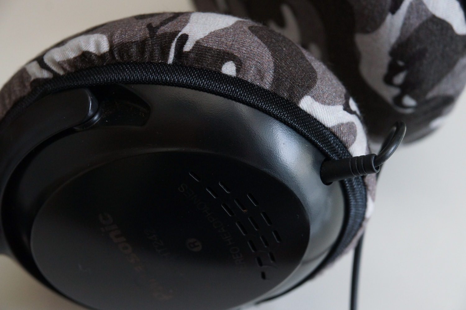 本カバーは縦と横で伸縮率に違いがあり、縦の方が伸びが良いという特性があります。本ヘッドホンは縦長のイヤーパッドなので、カバーも縦方向(よく伸びる方向)になるように、向きを揃えて装着する方が、装着感が良くなります。