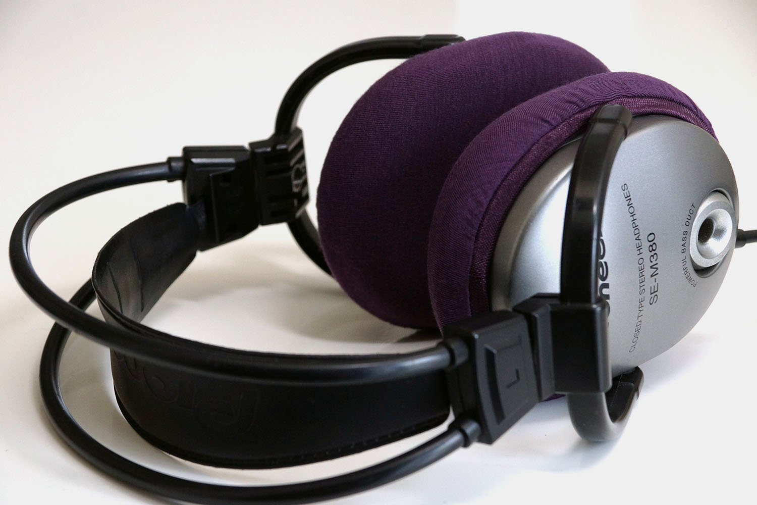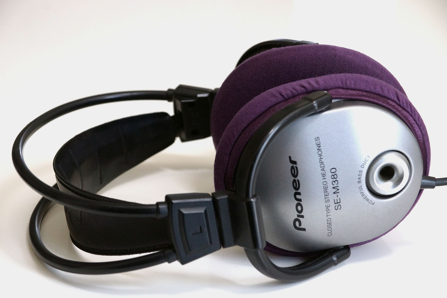 Pioneer SE-M380のイヤーパッドの修理や装着感の改善にmimimamoを使用する場合(※写真はLサイズの装着例)