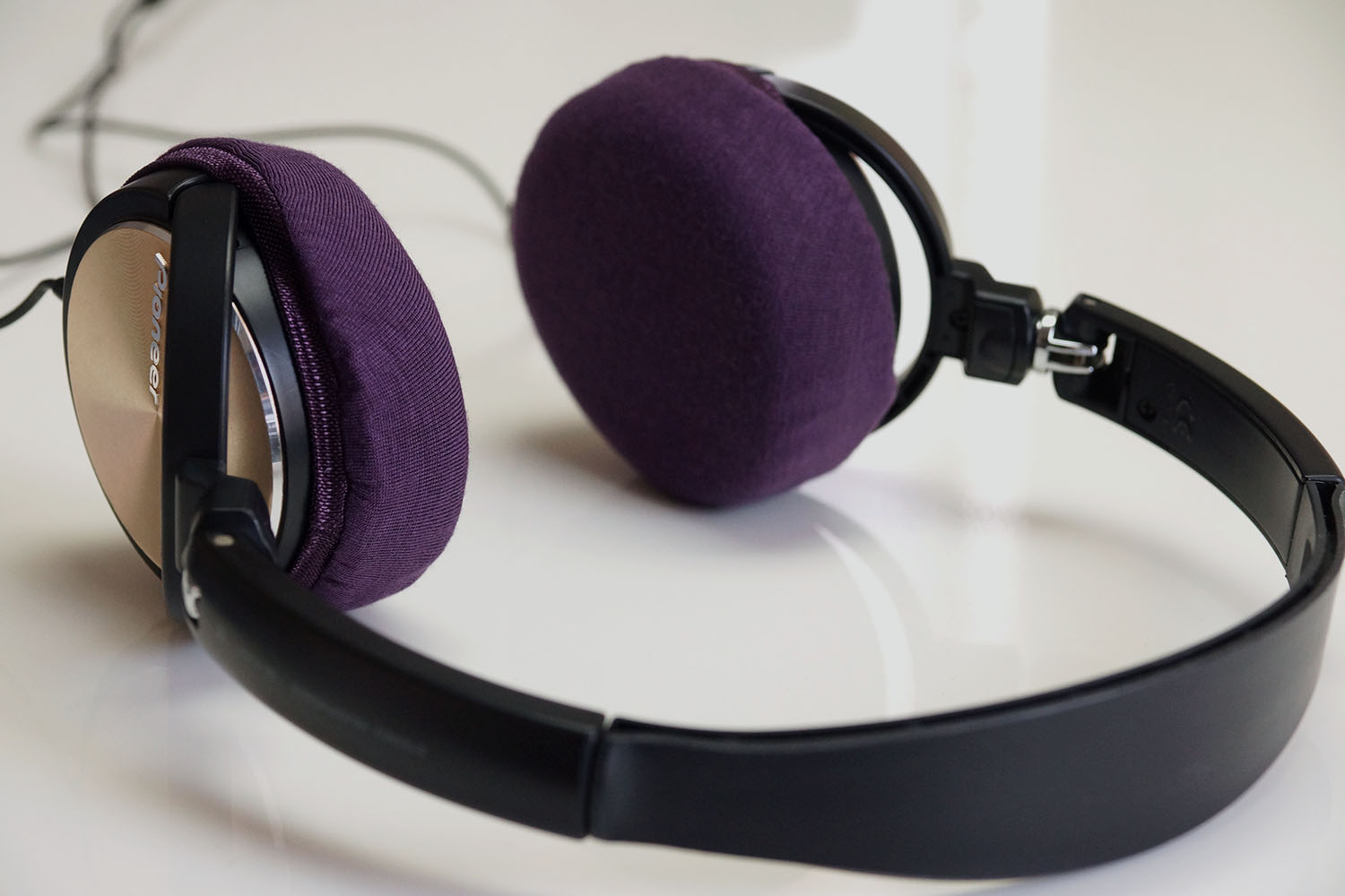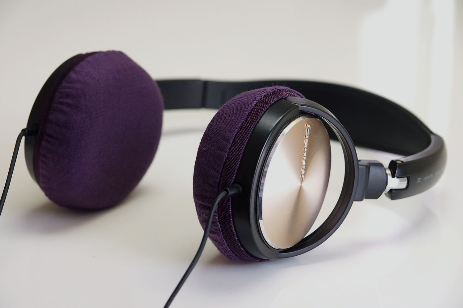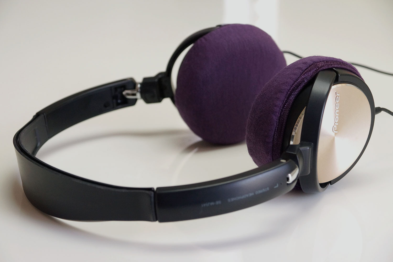 Pioneer SE-MJ541のイヤーパッドの修理や装着感の改善にmimimamoを使用する場合(※写真はMサイズの装着例)