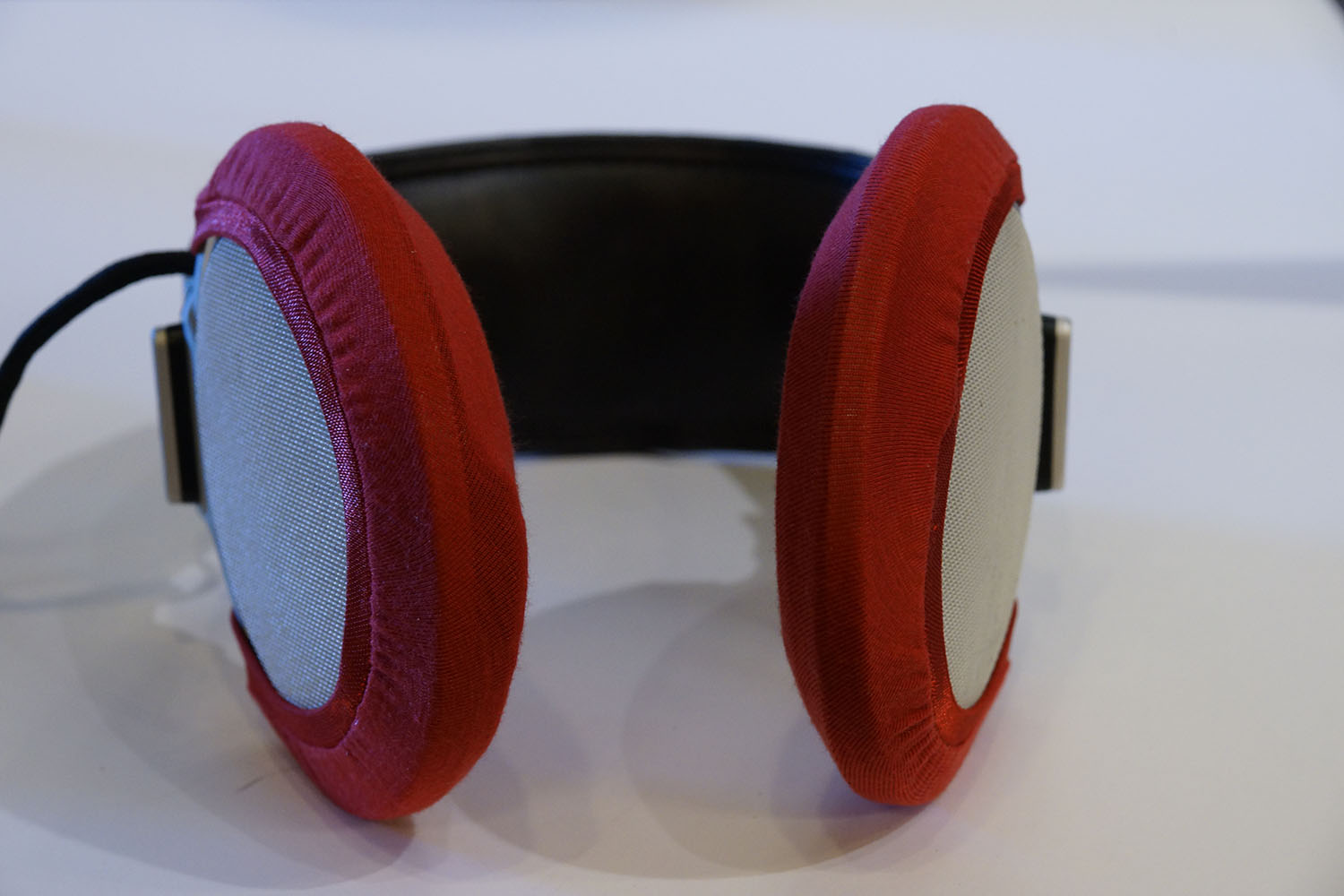 Sansui SS-100のイヤーパッドの修理や装着感の改善にmimimamoを使用する場合(※写真はLサイズの装着例 ※撮影協力:第14回ヘッドホン対応表ご協力キャンペーン参加者様)