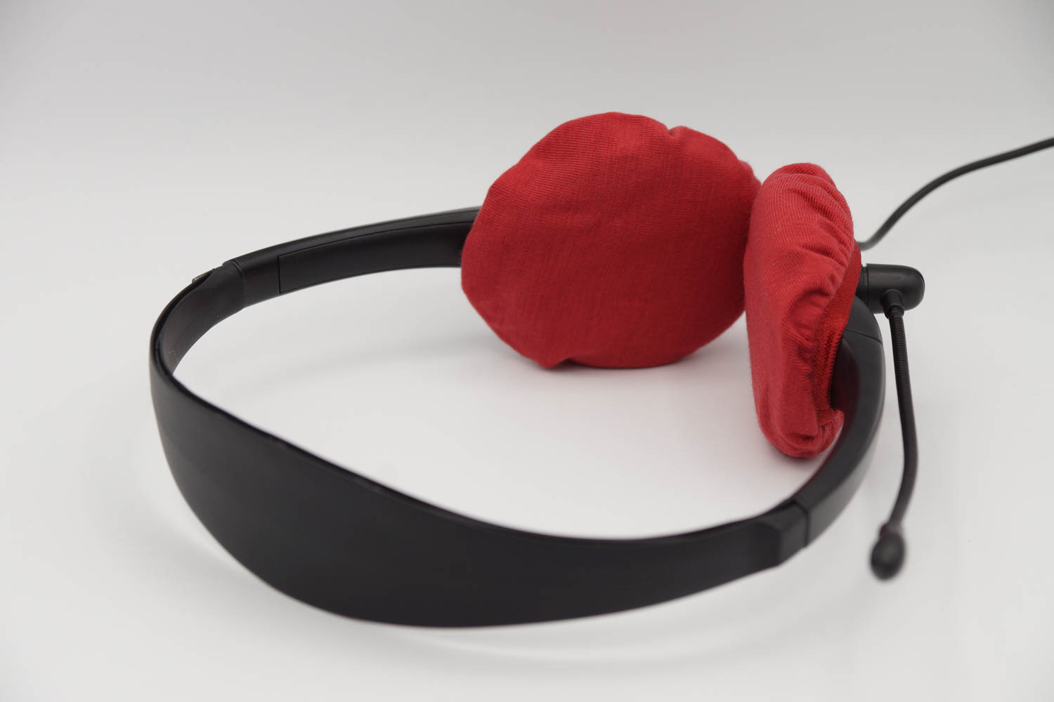 SANWA SUPLY MM-HSTC02BKのイヤーパッドの修理や装着感の改善にmimimamoを使用する場合(※写真はMサイズの装着例)
