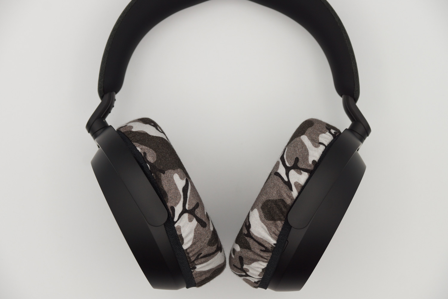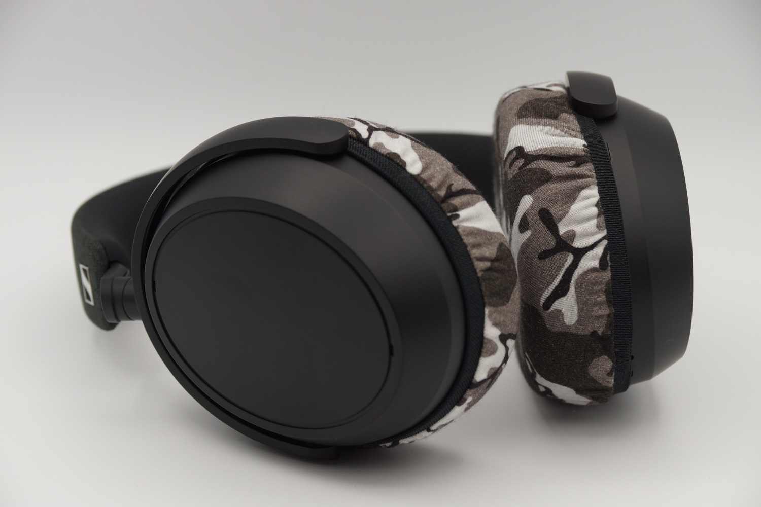 本カバーは縦と横で伸縮率に違いがあり、縦の方が伸びが良いという特性があります。本ヘッドホンは縦長のイヤーパッドなので、カバーも縦方向(よく伸びる方向)になるように、向きを揃えて装着する方が、装着感が良くなります。