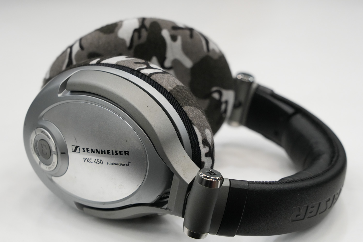 SENNHEISER PXC450のイヤーパッドの修理や装着感の改善にmimimamoを使用する場合(※写真はLサイズの装着例)