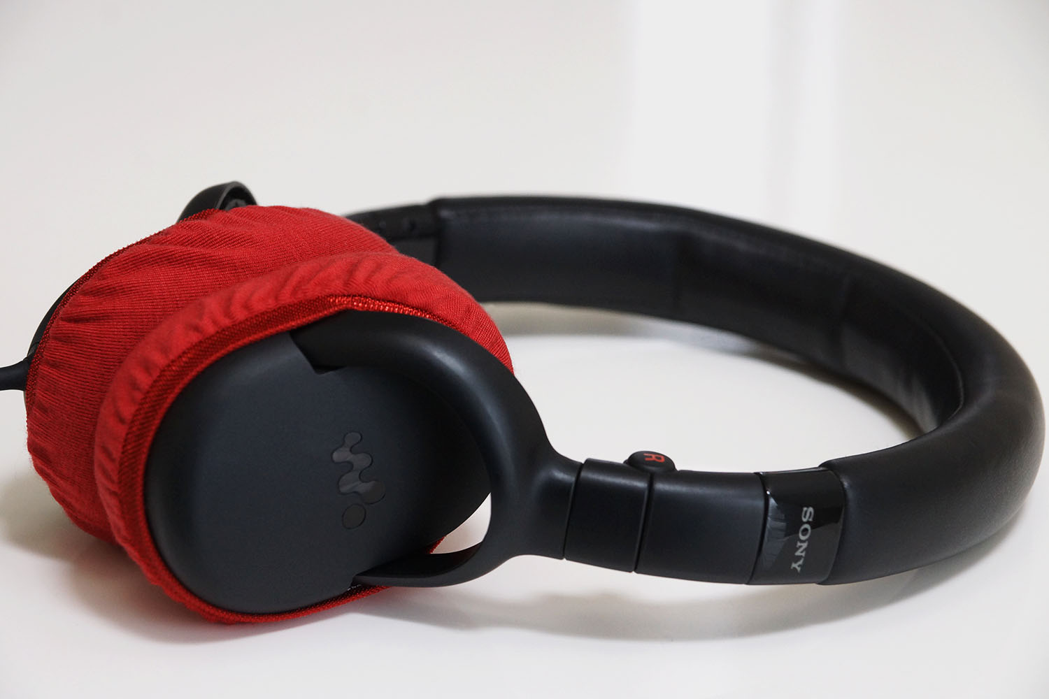 SONY MDR-NWNC200のイヤーパッドの修理や装着感の改善にmimimamoを使用する場合(※写真はMサイズの装着例)