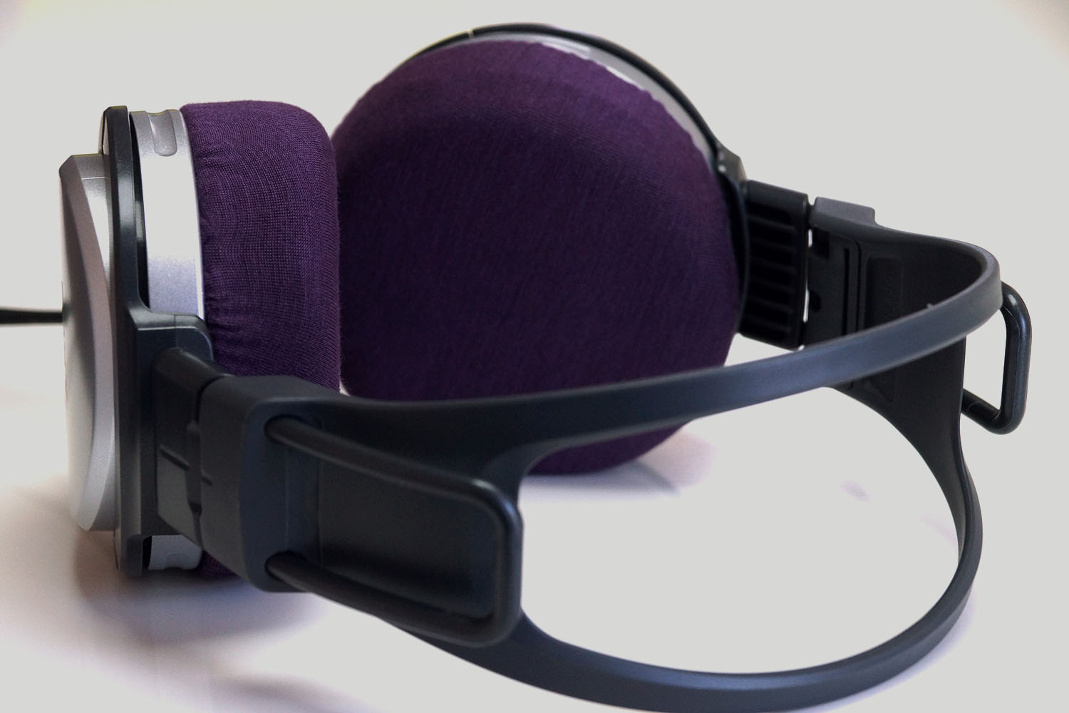 カバーを付けた後、ヘッドホンを装着する前に、手でカバーをイヤーパッドの内側へ押して生地を伸ばしておくと、カバーの張りが弱まり装着感が良くなります。カバーを使用することにより耳に圧迫感を感じる場合は一度お試しください。