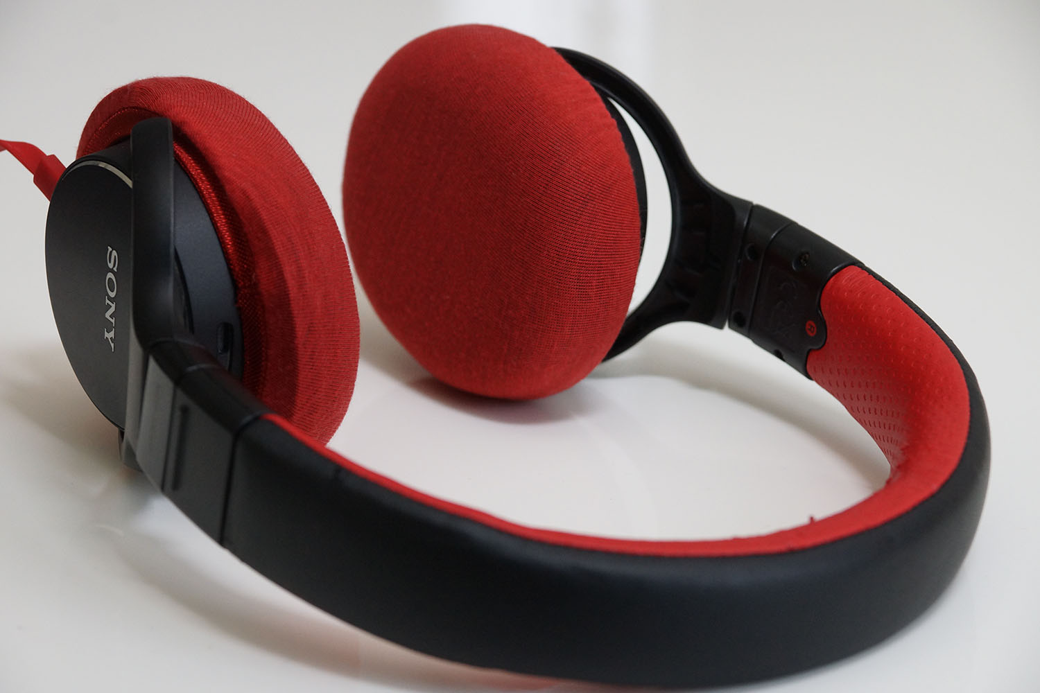 SONY MDR-ZX750のイヤーパッドの修理や装着感の改善にmimimamoを使用する場合(※写真はMサイズの装着例)