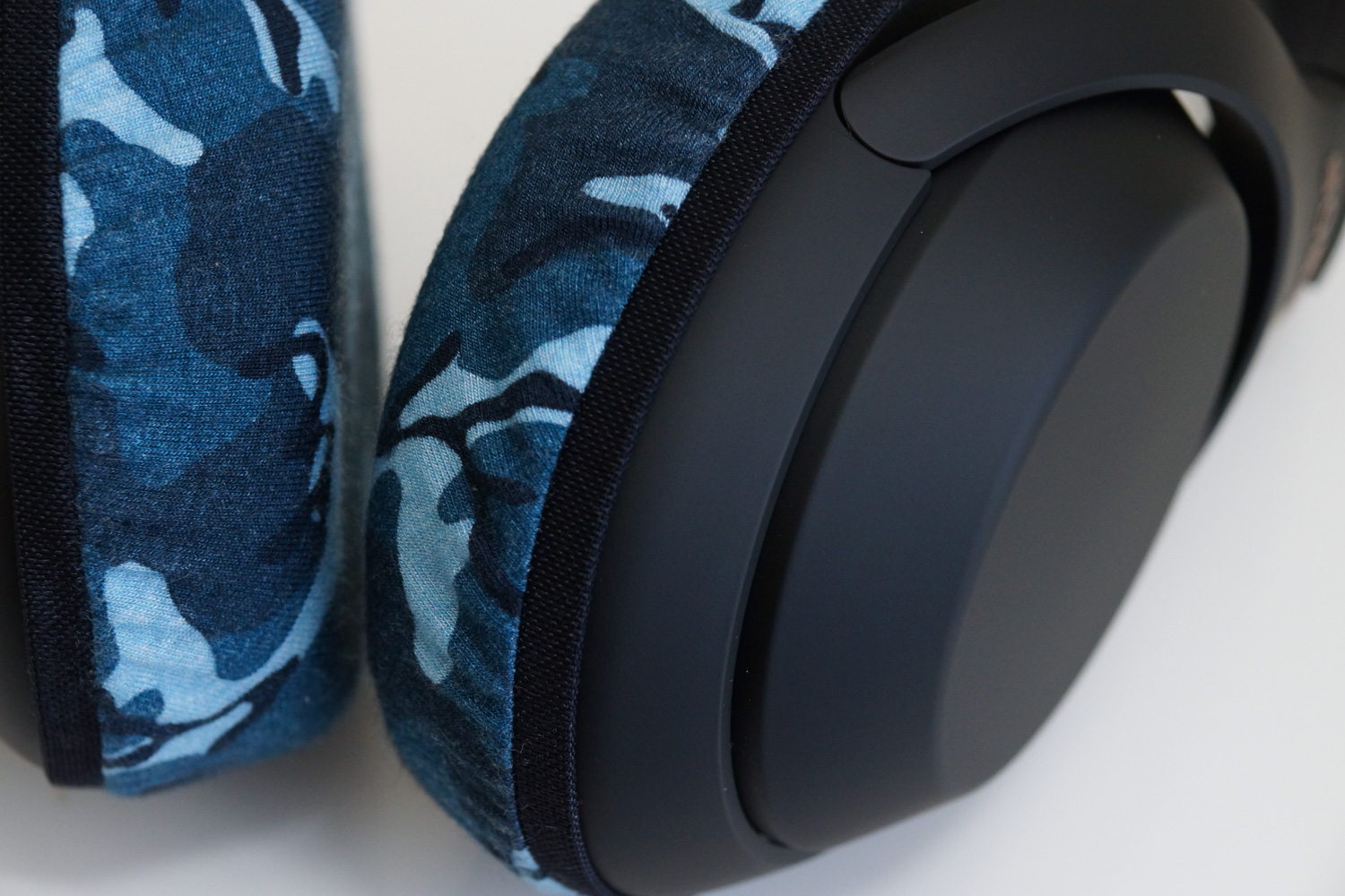 本ヘッドホンは縦長のイヤーパッドなので、カバーも縦方向(よく伸びる方向)になるように、向きを揃えて装着する方が、装着感が良くなります。
