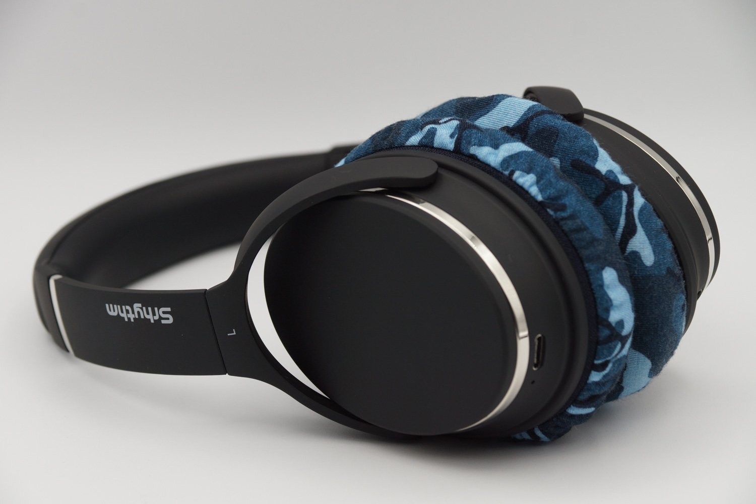 Srhythm NiceComfort 25のイヤーパッドの修理や装着感の改善にmimimamoを使用する場合(※写真はLサイズの装着例)