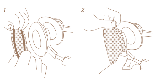 以雙手撐開鬆緊帶,包覆住整個耳機墊。