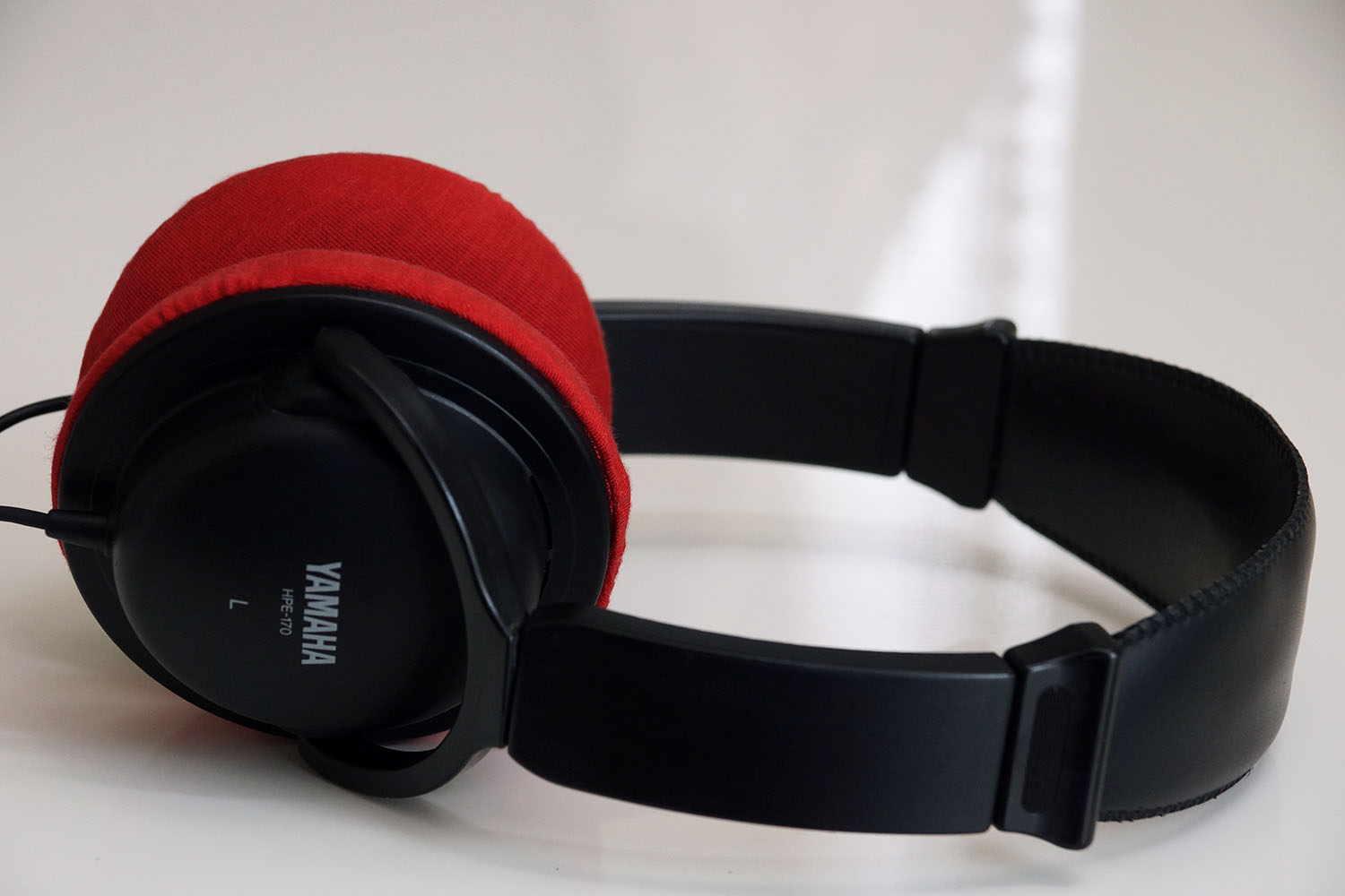 YAMAHA HPE-170のイヤーパッドの修理や装着感の改善にmimimamoを使用する場合(※写真はMサイズの装着例)